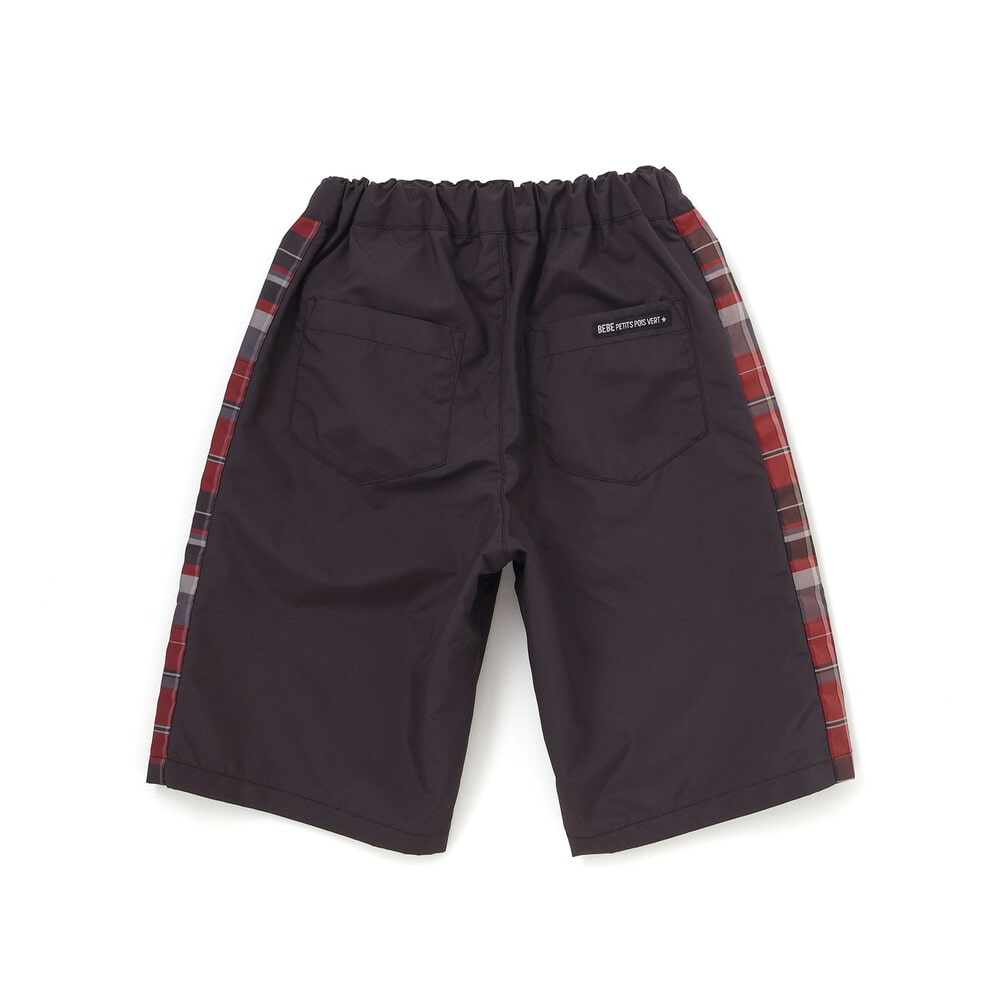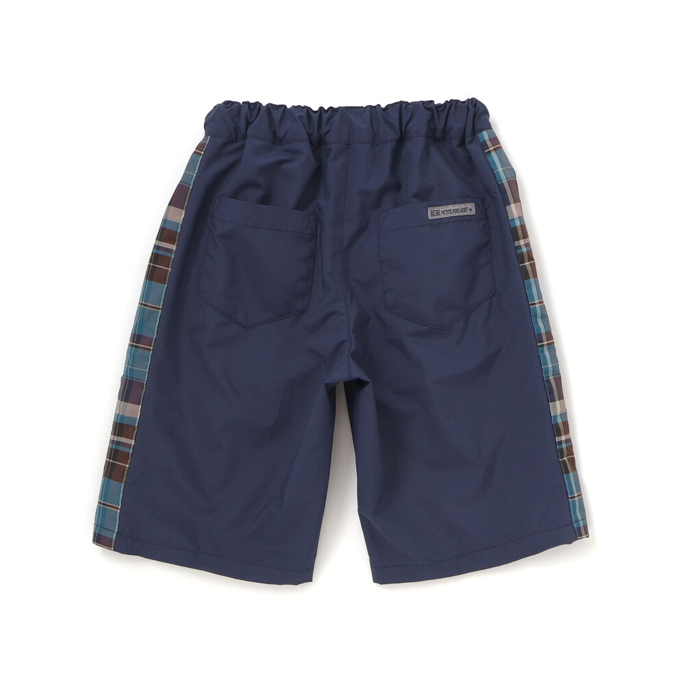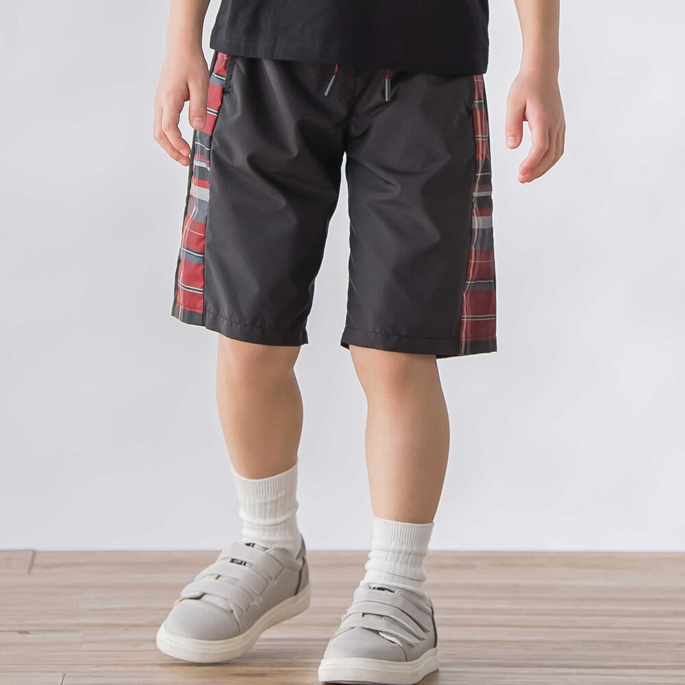 チェック柄のサイド切り替えが目を引く、カジュアルな男の子用ハーフパンツ。