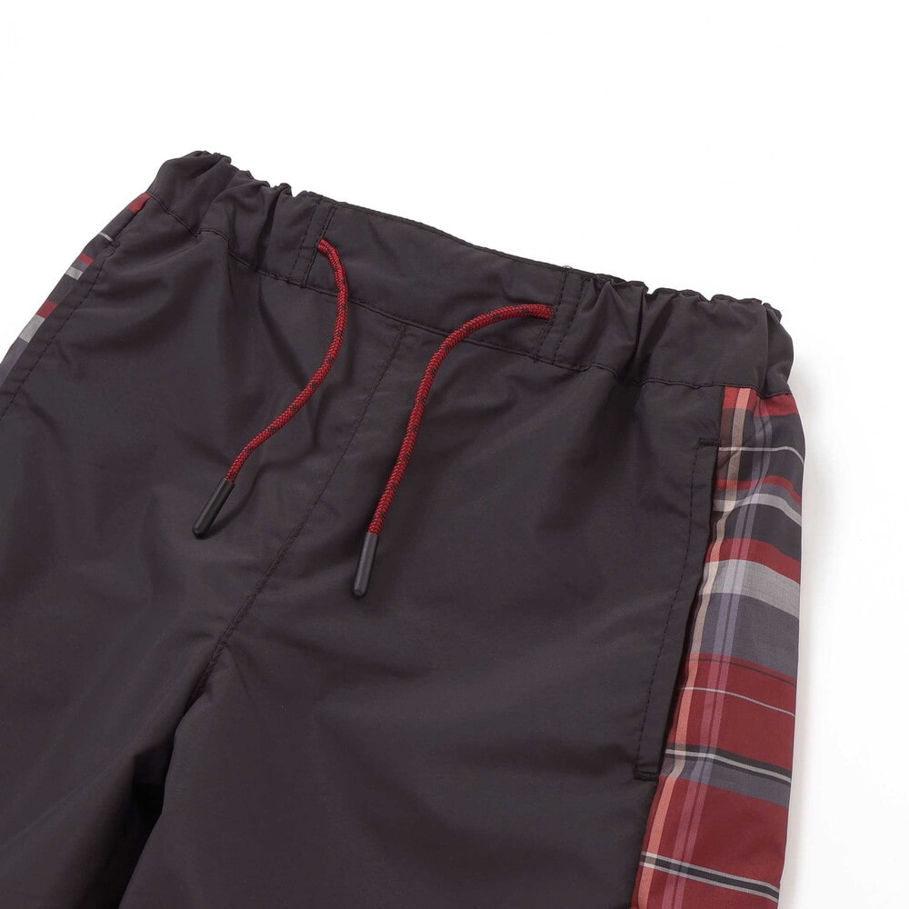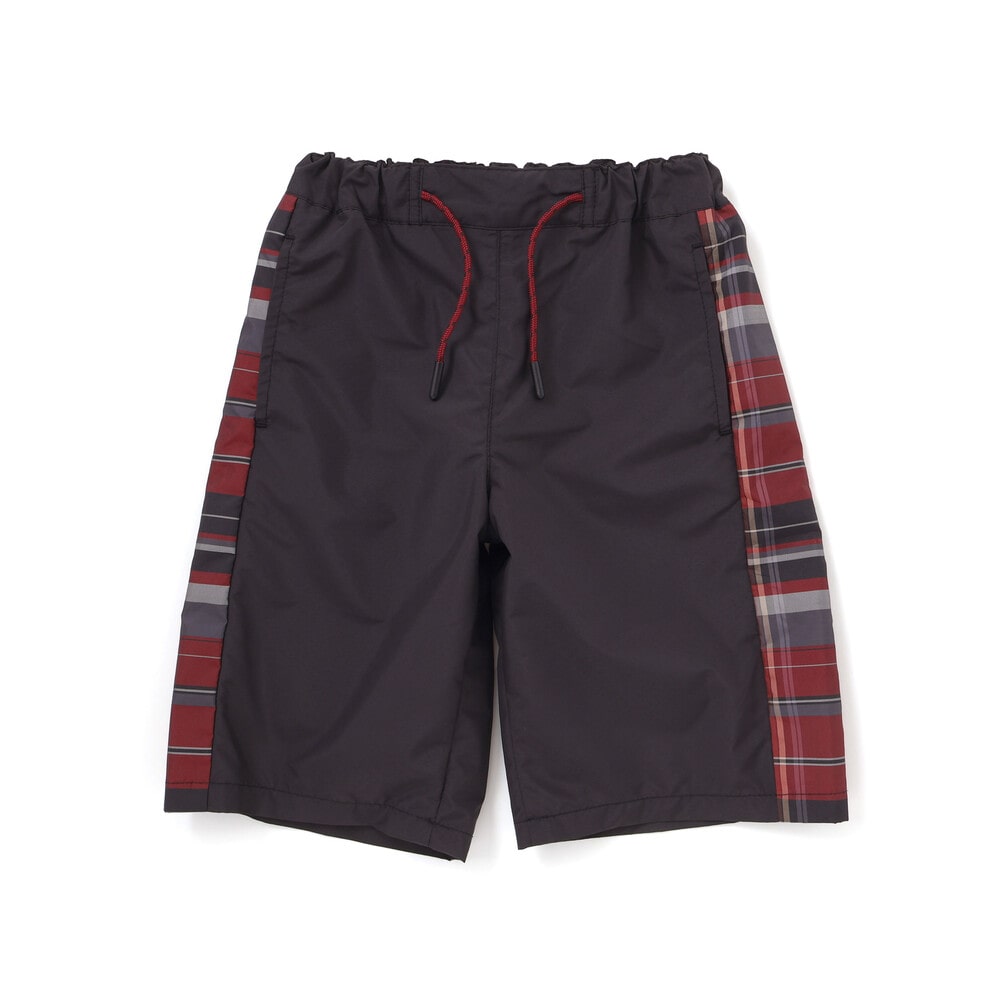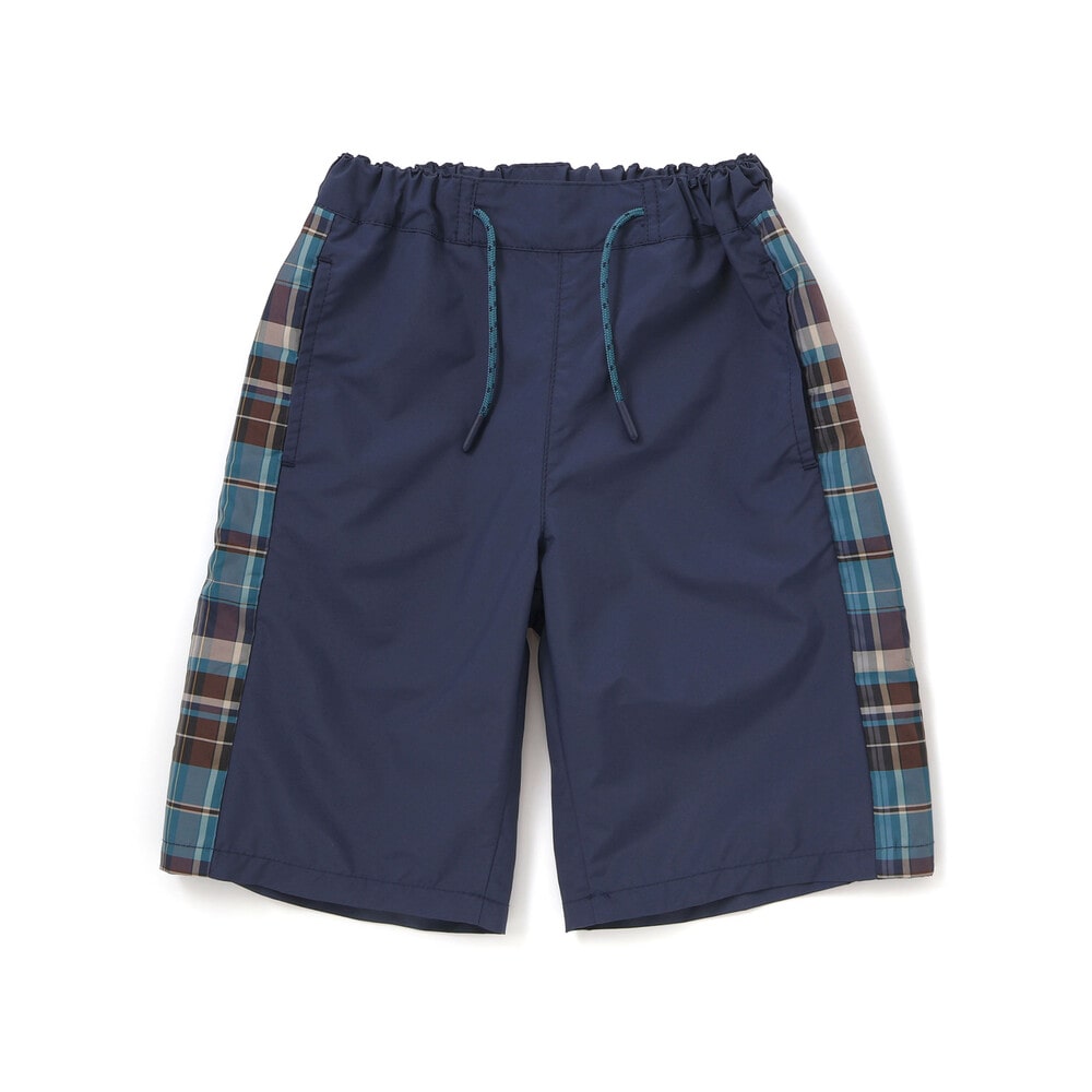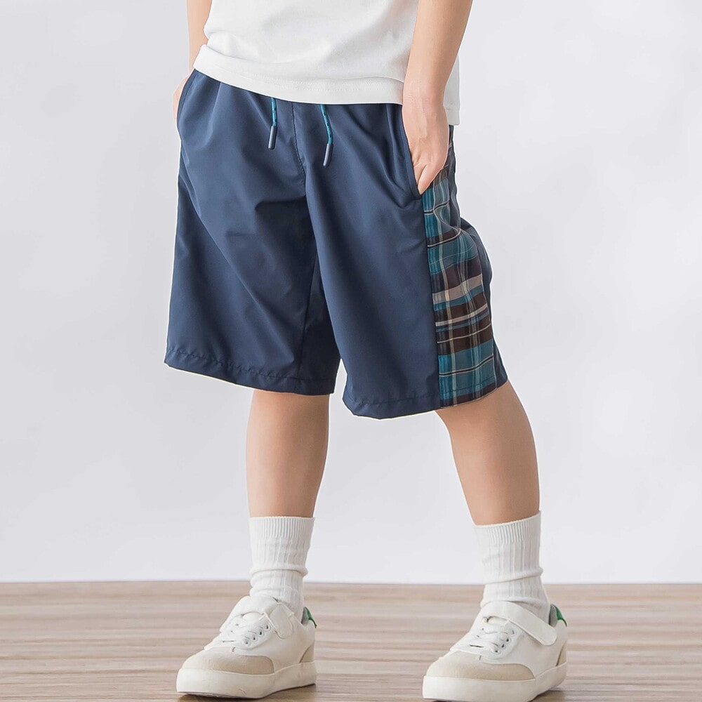 チェック柄のサイド切り替えが目を引く、カジュアルな男の子用ハーフパンツ。