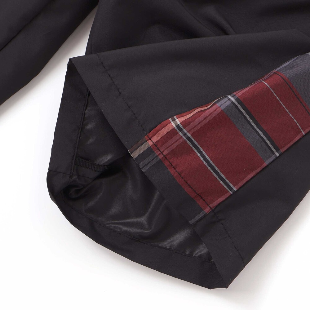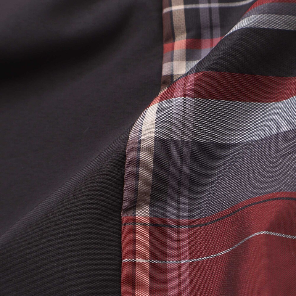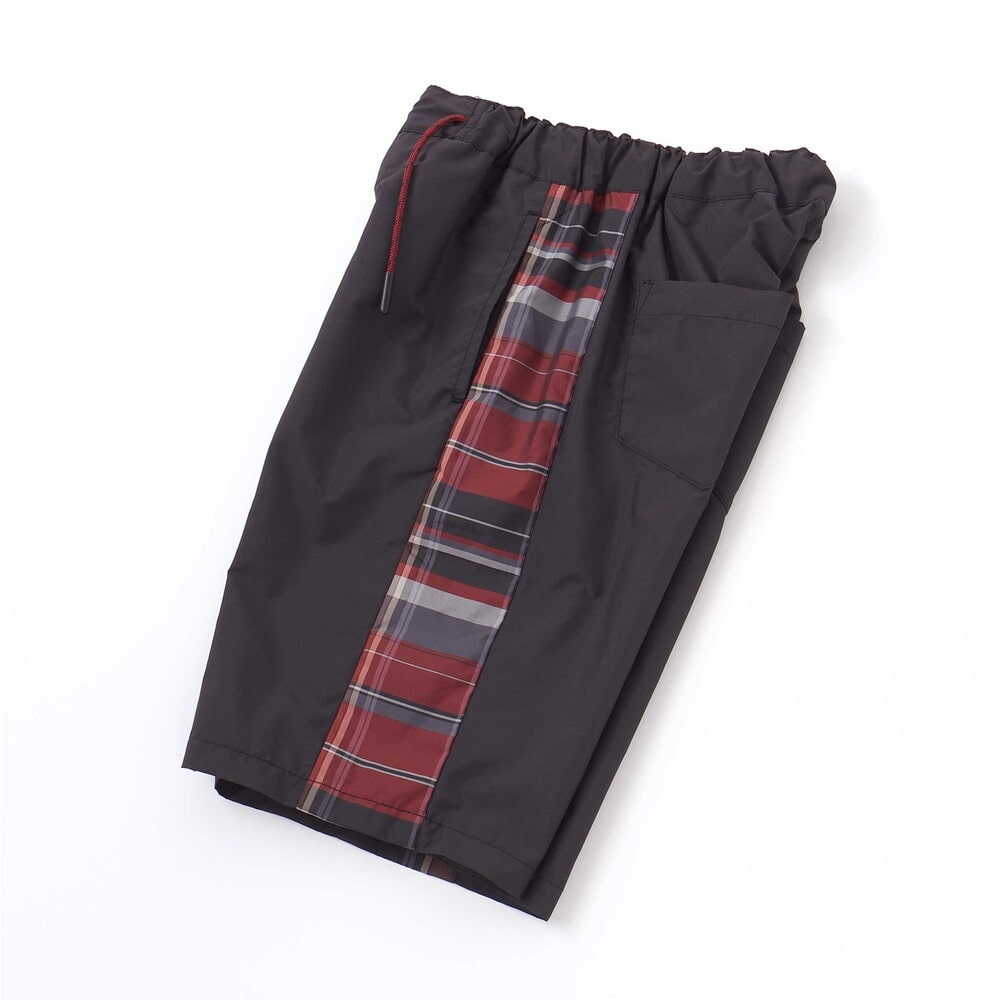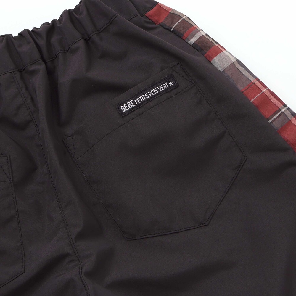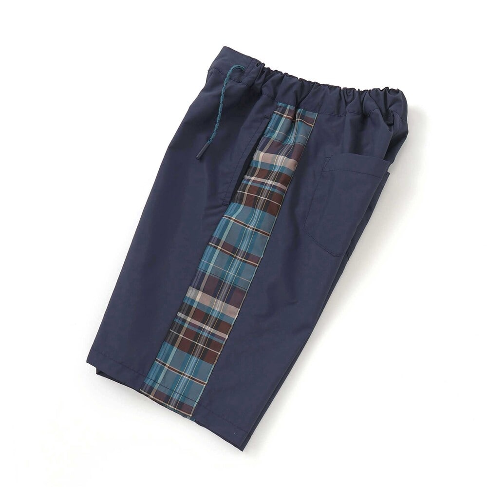 シンプルな無地ベースに、サイドのチェック柄と配色ウエストコードがアクセントで、スポーティーでおしゃれな印象に仕上げました。