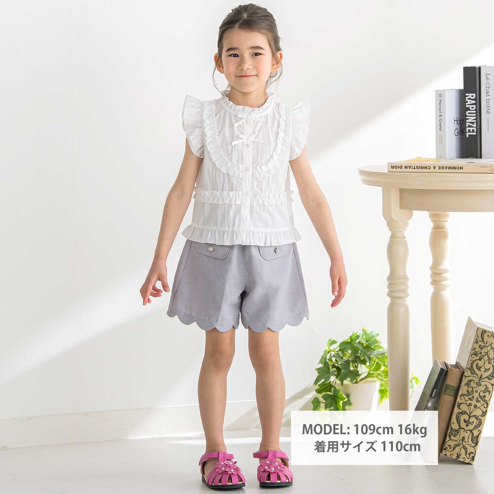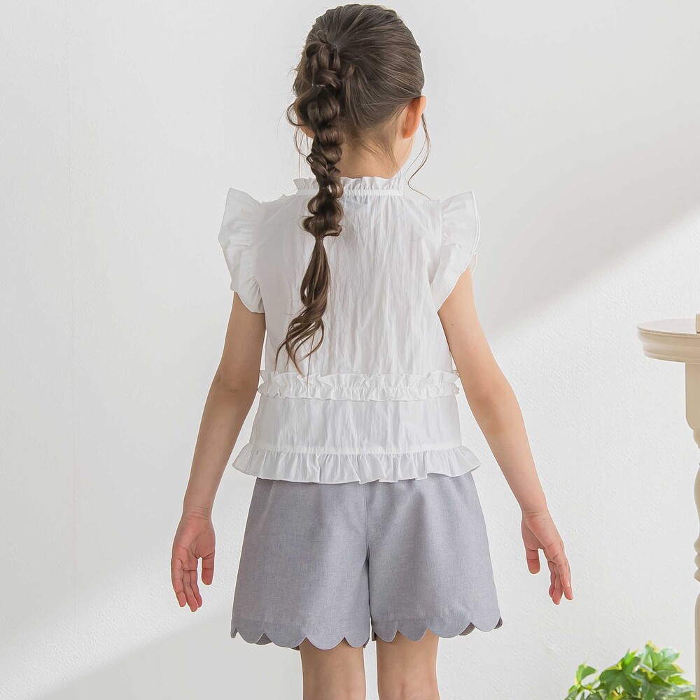 ふんわりとしたシルエットにスカラップ裾を合わせた、女の子らしさが引き立つ上品デザイン。