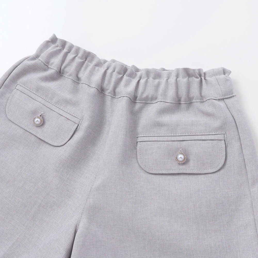 きれいめキッズコーデに大活躍。パールボタンが輝くツイードパンツ。