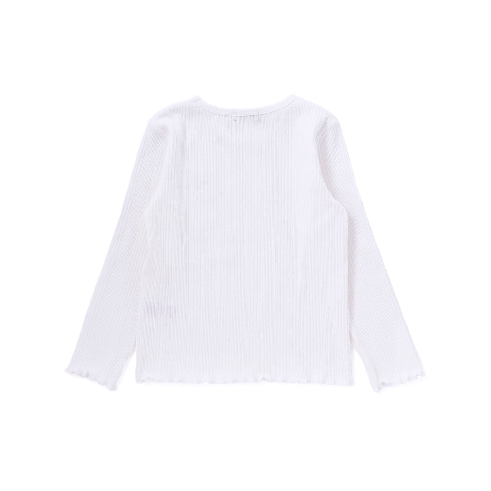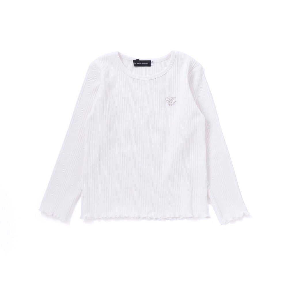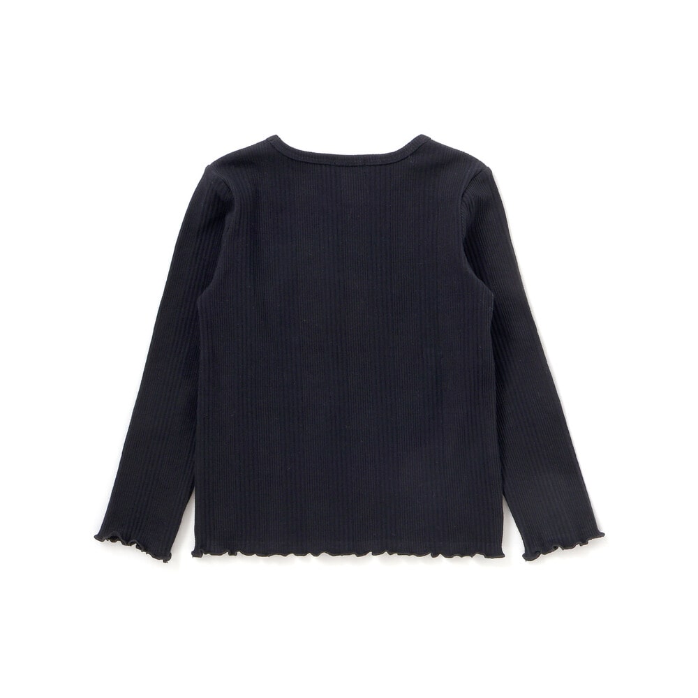 シンプルながら上品なデザインが魅力の、女の子用リブ素材長袖トップス。