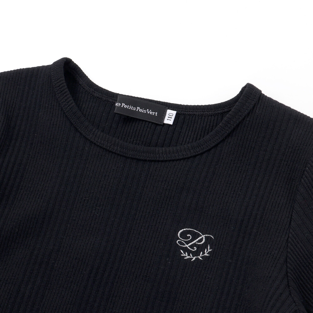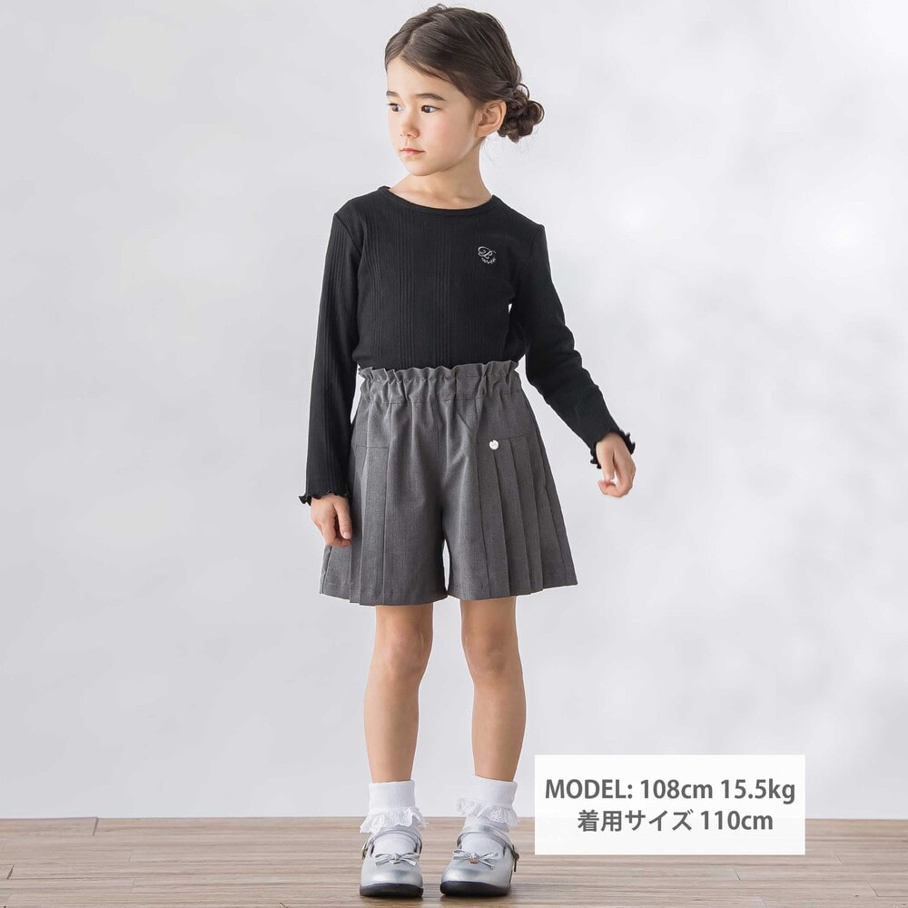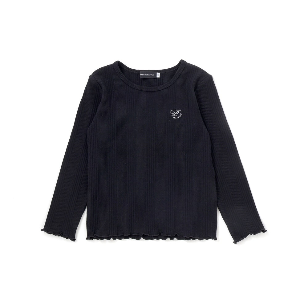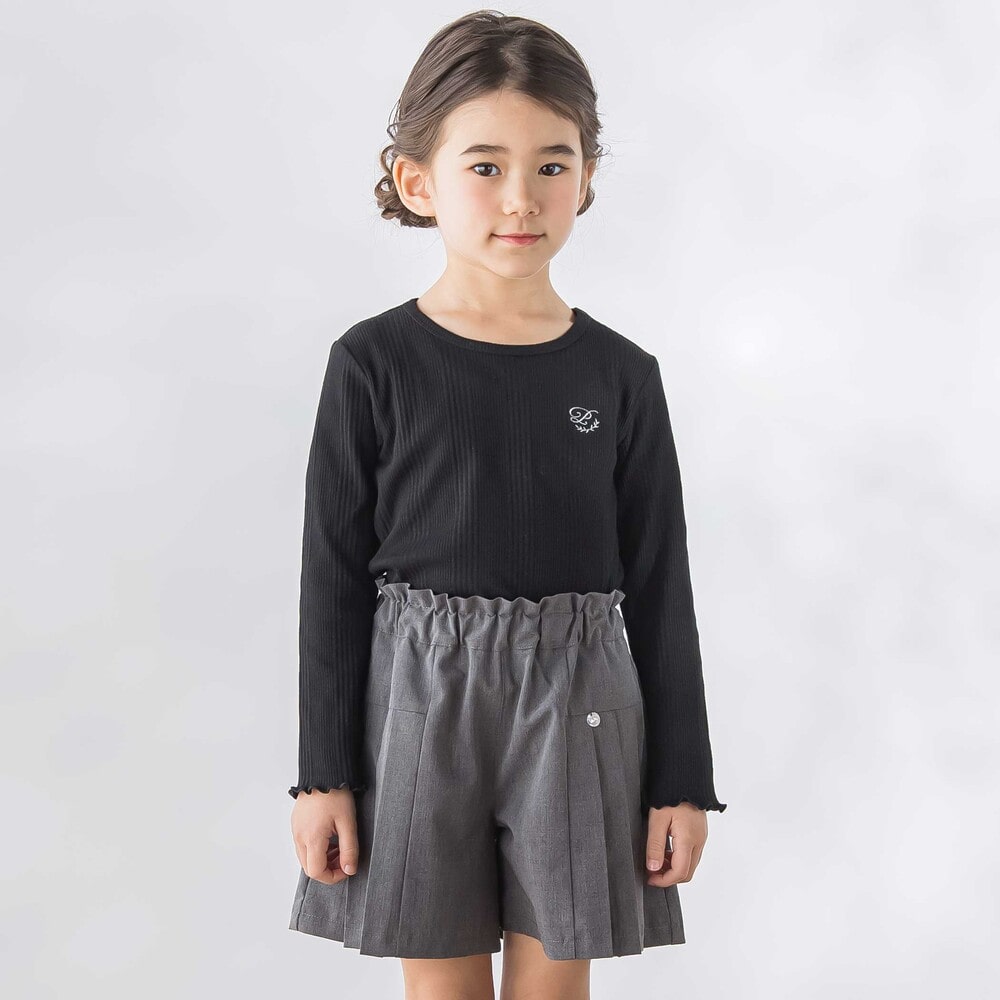 シンプルながら上品なデザインが魅力の、女の子用リブ素材長袖トップス。