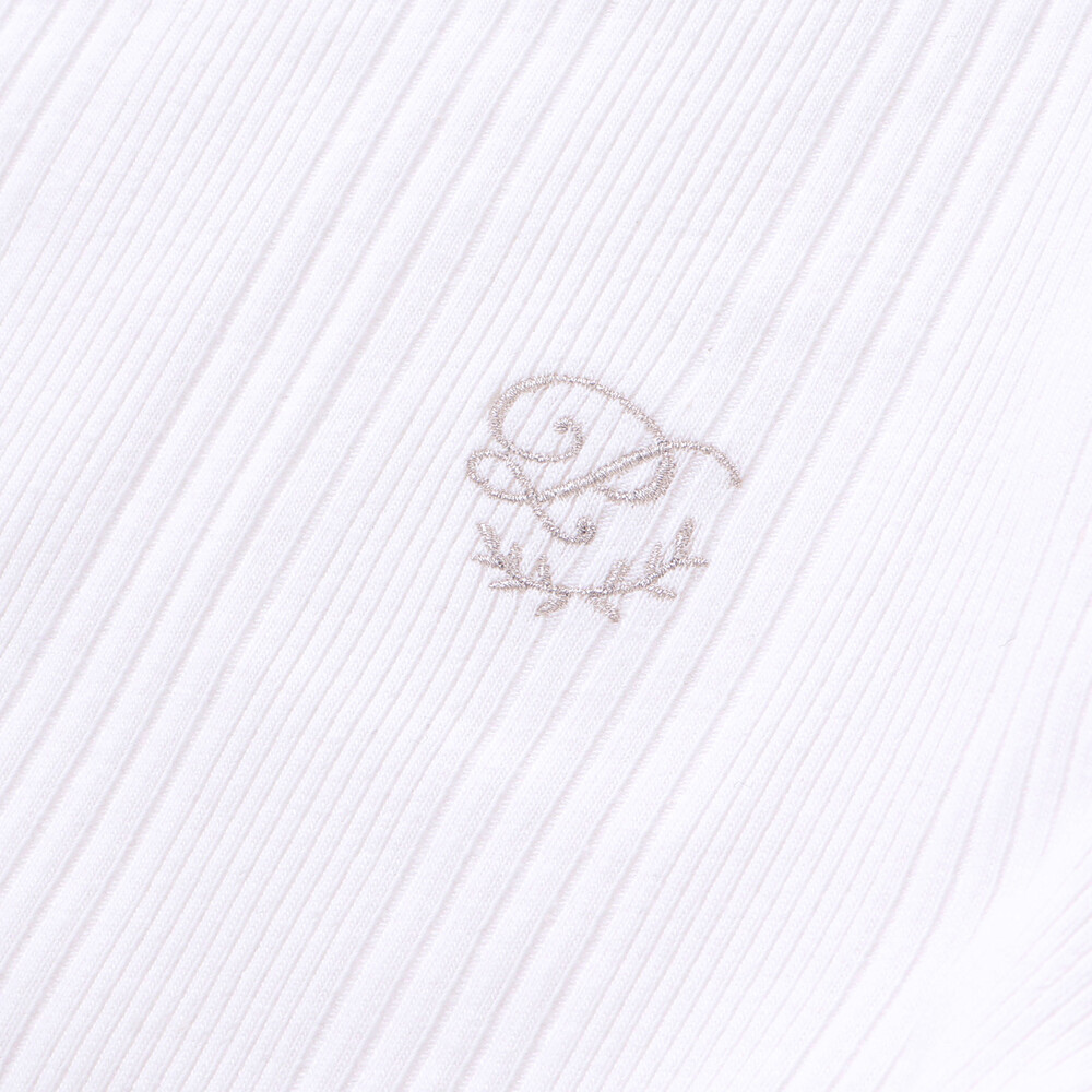 胸元にはワンポイント刺しゅうをあしらい、ナチュラルで洗練された印象に。