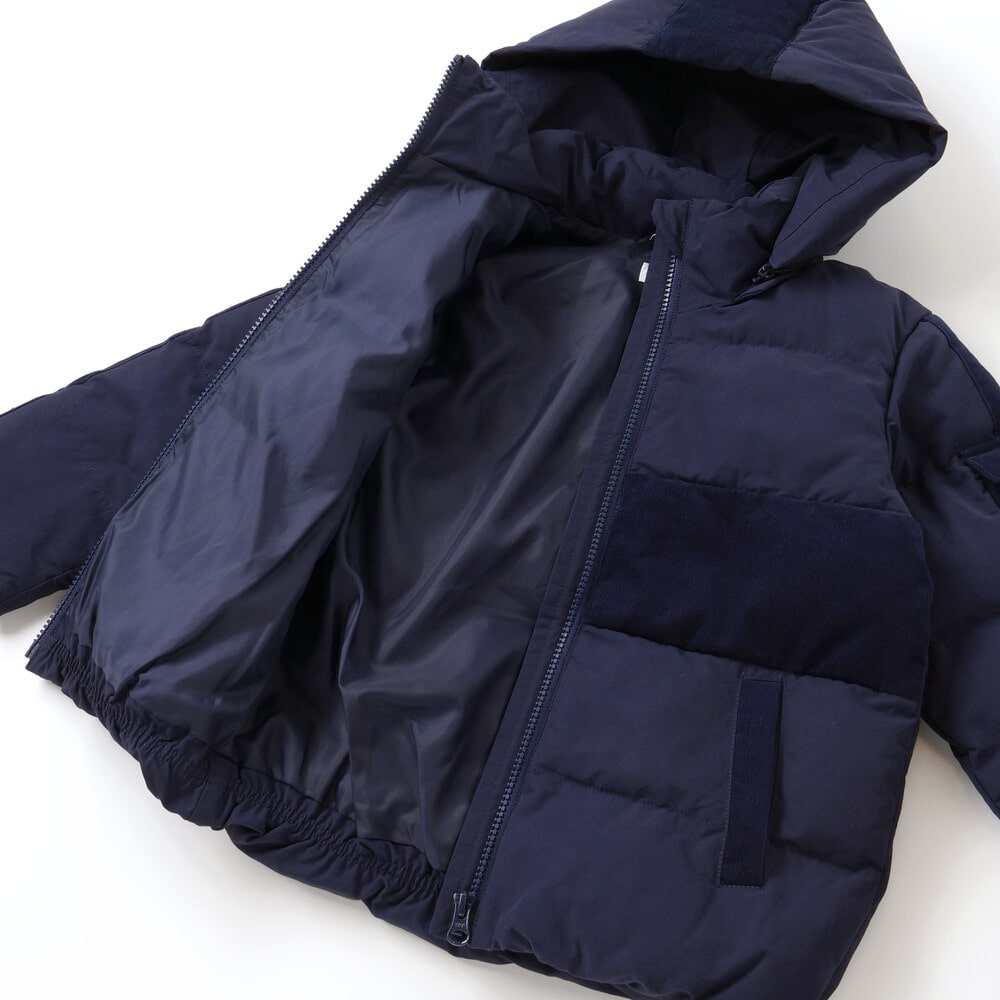 耐久性のある綿ナイロン素材に、暖かな中わたとさらっとしたタフタ裏地で快適さを実現。
