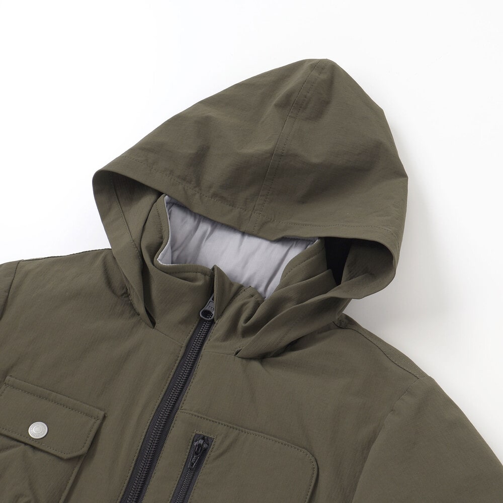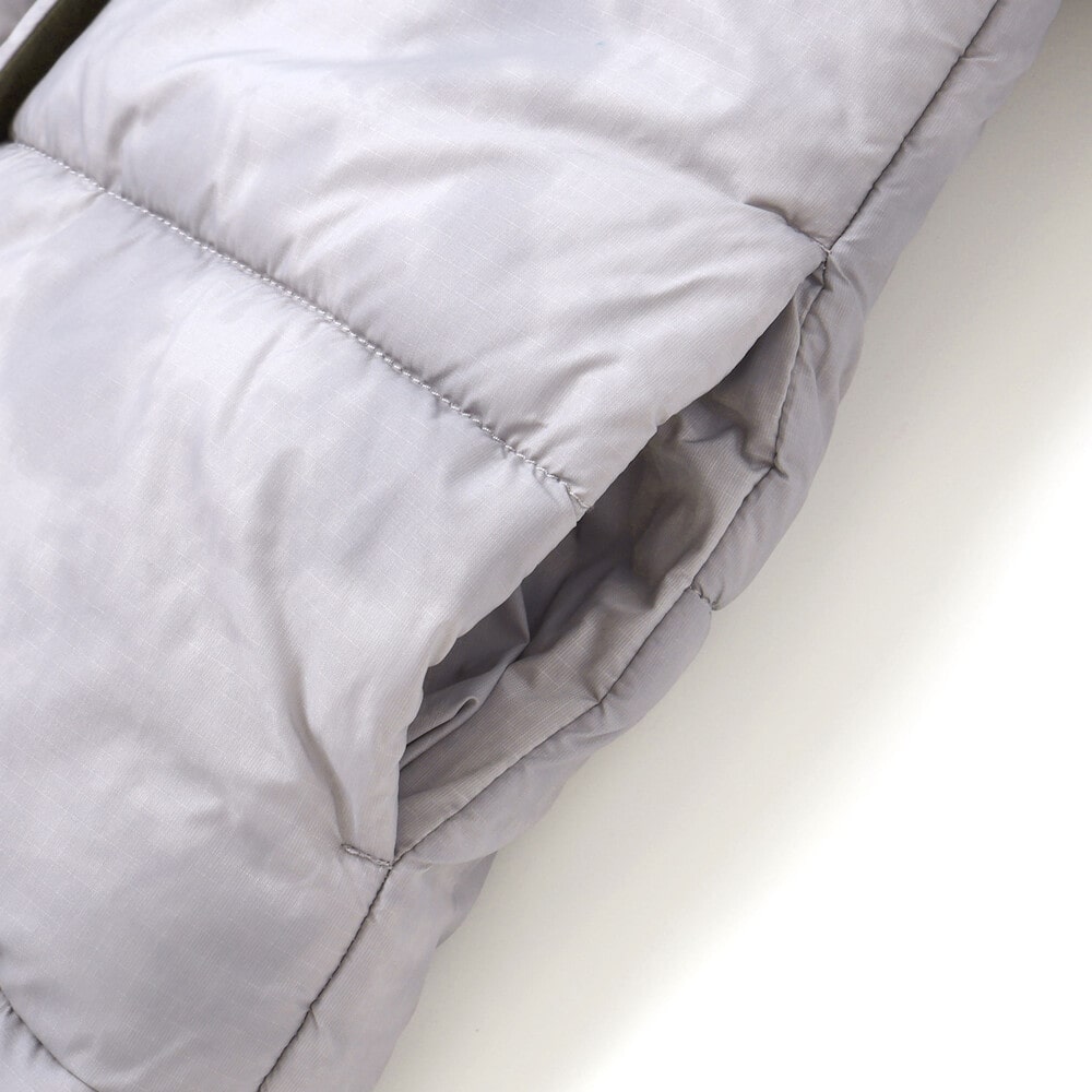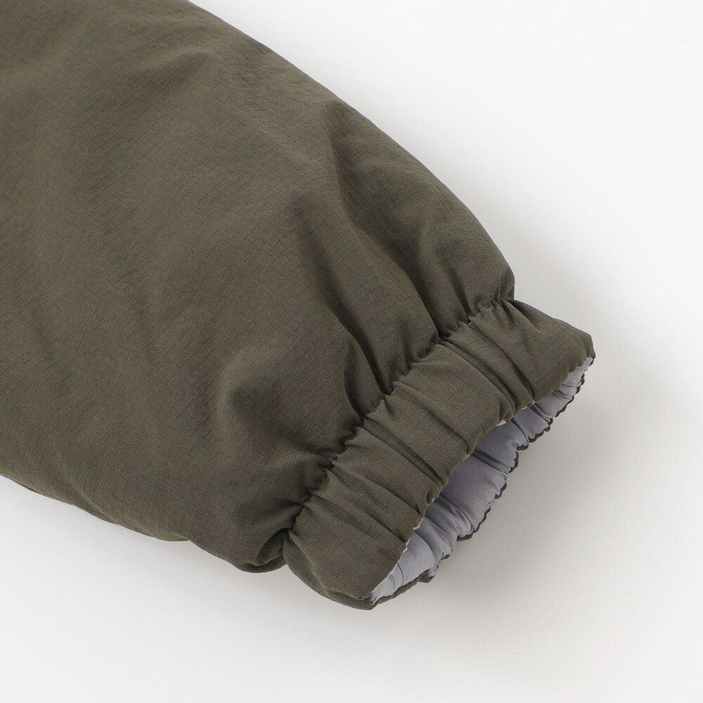 丈夫なリップストップ素材を表裏に使い、中わた入りであたたかさも抜群。