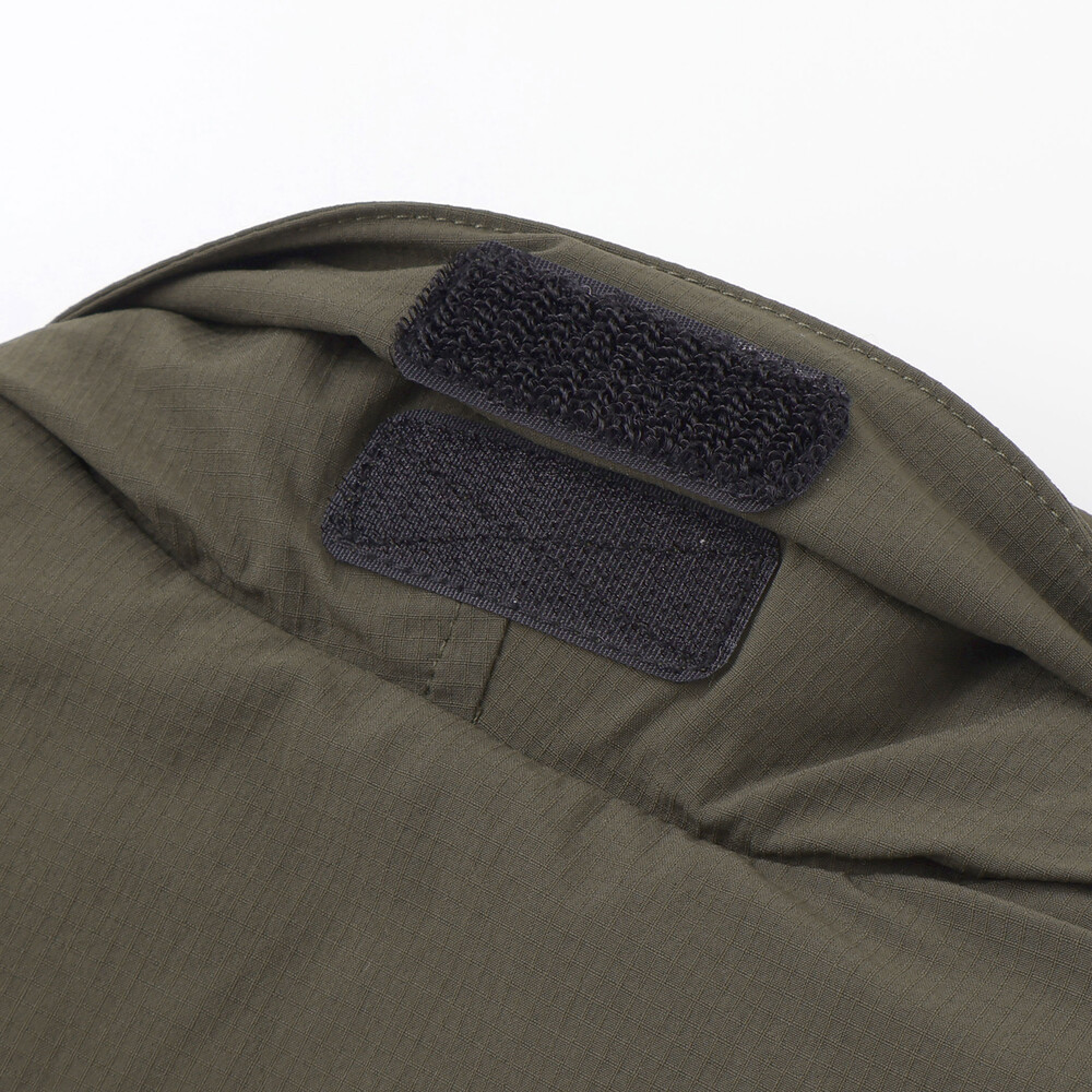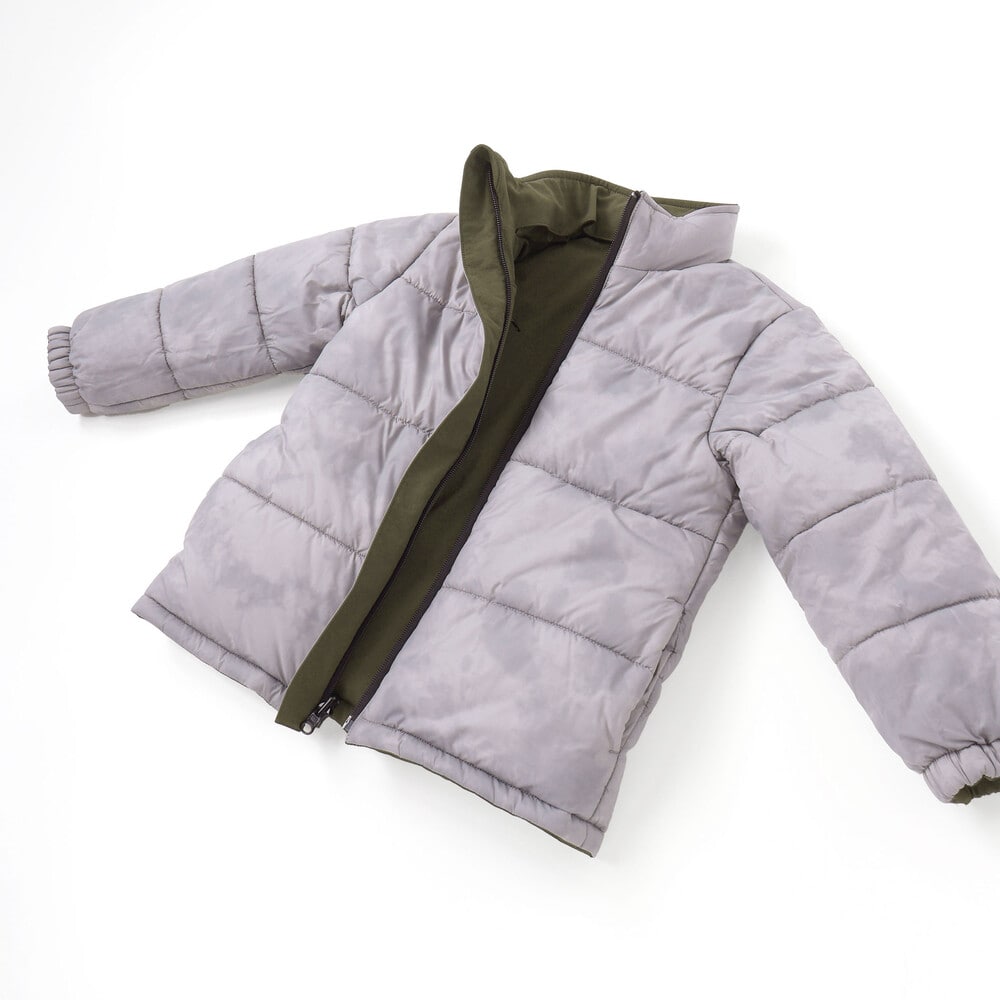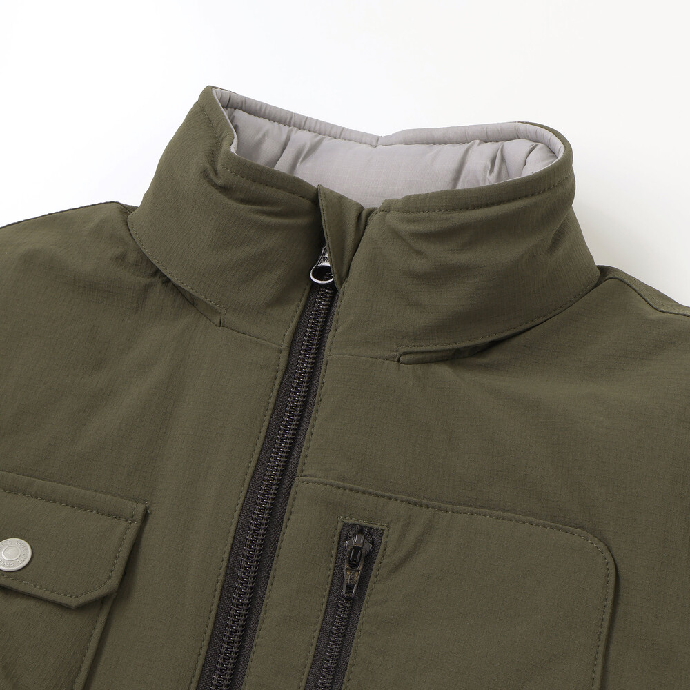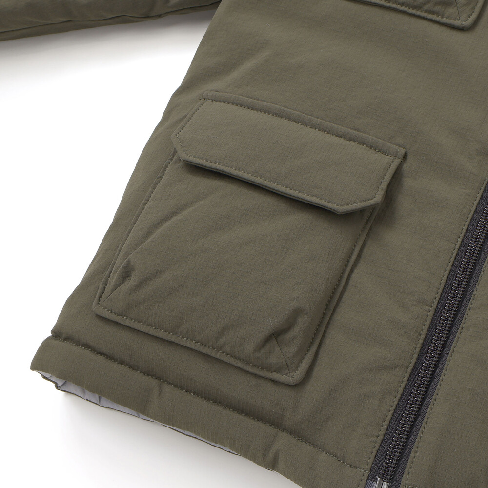 丈夫なリップストップ素材を表裏に使い、中わた入りであたたかさも抜群。