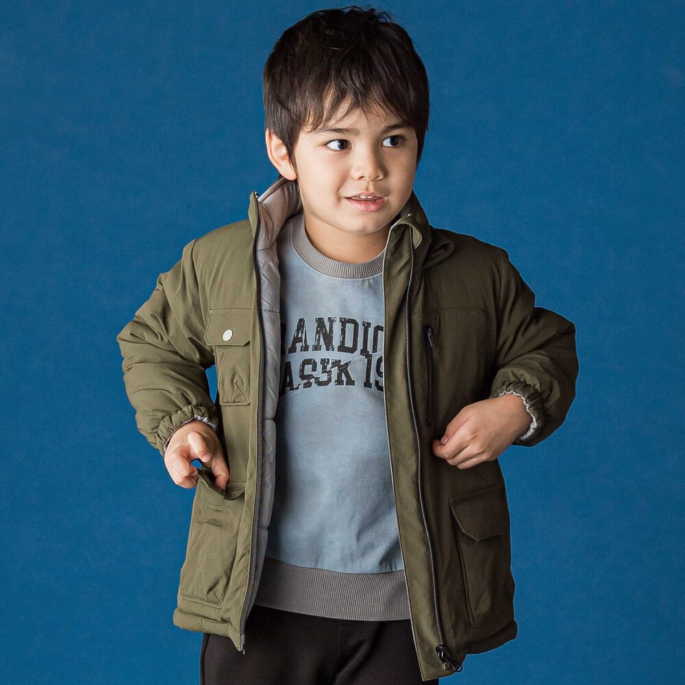 フードは襟にしまえるデザインで、通学やお出かけシーンにも使いやすい便利なジャケットです。