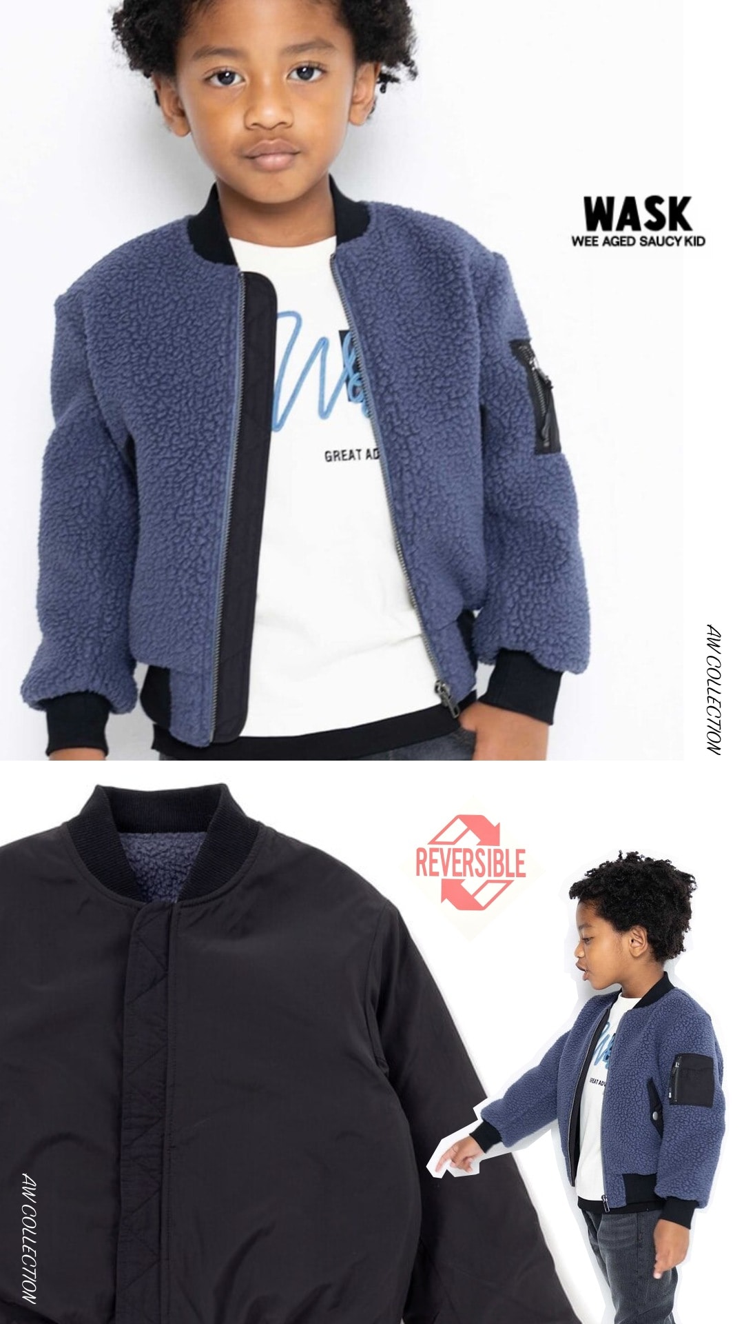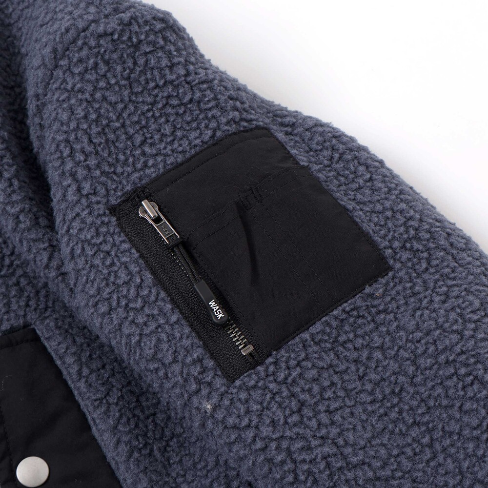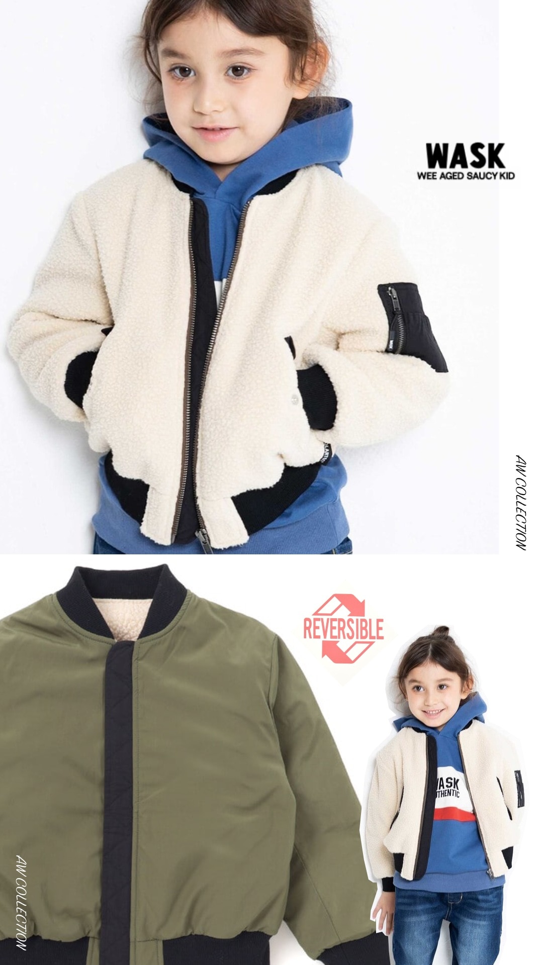 腕にはWASKオリジナルの持ち手付きファスナーポケットを、身頃サイドにはホックボタン付きのフラップポケットを備え、機能性とデザイン性を両立させました。