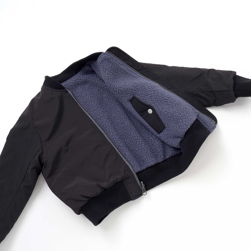 ふんわり暖かなボア面と、スポーティーなツヤ感のタフタ面、気分に合わせて選べるリバーシブル仕様。