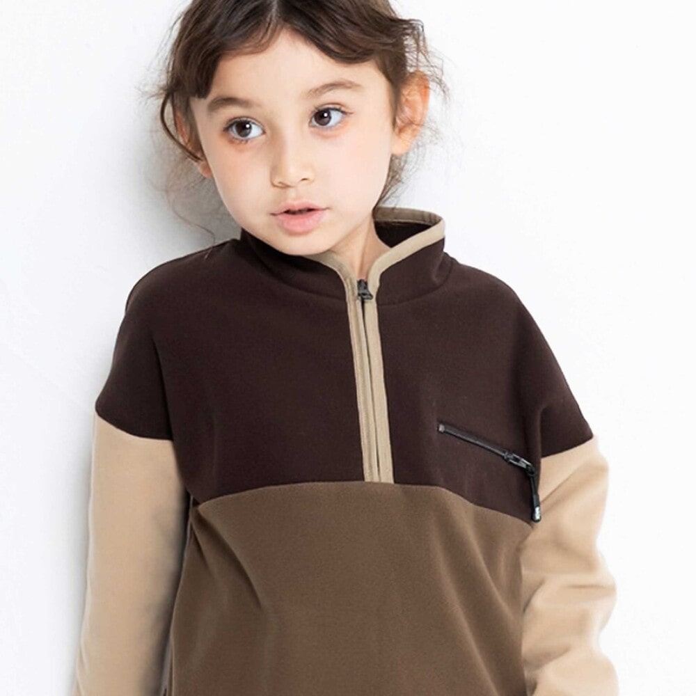 レトロでクラシックな配色切り替えがポイントのハーフジッププルオーバー。