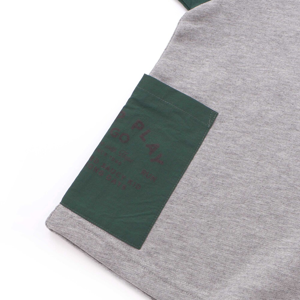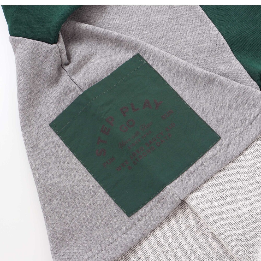 オフホワイトは袖のブラック切り替えで爽やかに、杢グレーは袖のグリーン切り替えでこなれたカジュアルムードを演出。