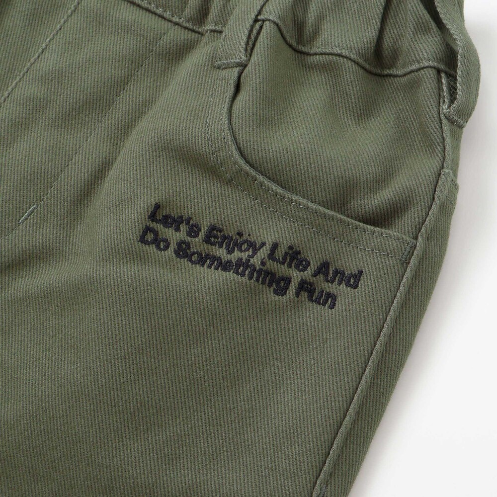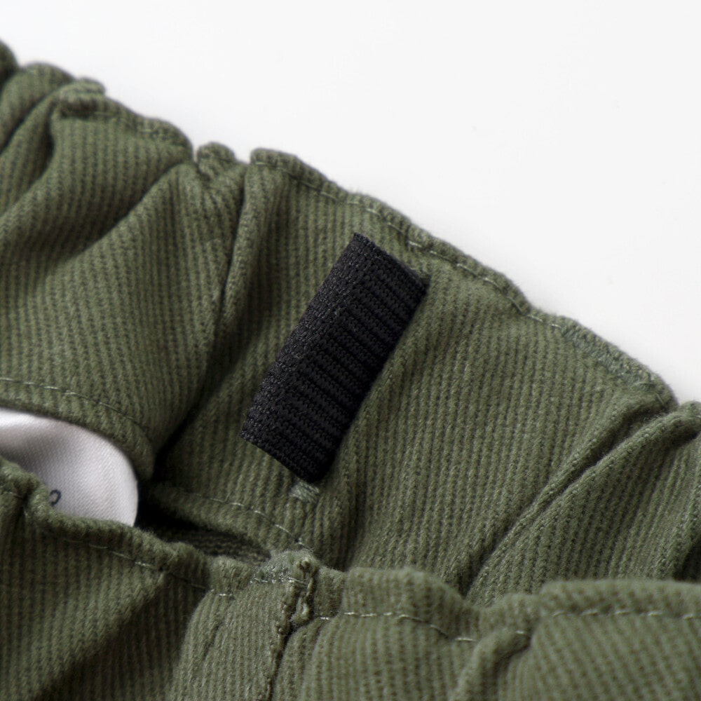 ウエストはゴムで調節可能、両脇&コインポケット付きで使い勝手も抜群。