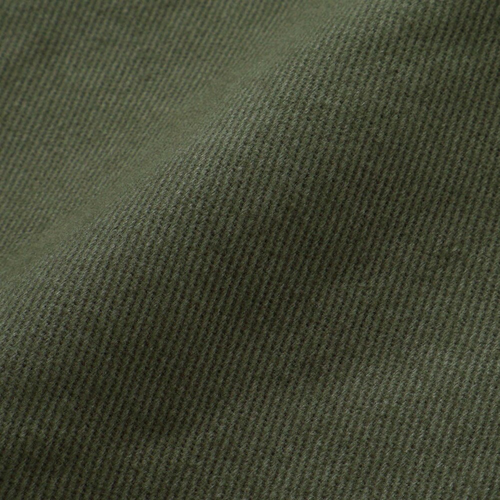 シンプルなレギュラーシルエットに映えるロゴ刺しゅうと折り返しで見せる裾の織ネームがさりげないアクセント。