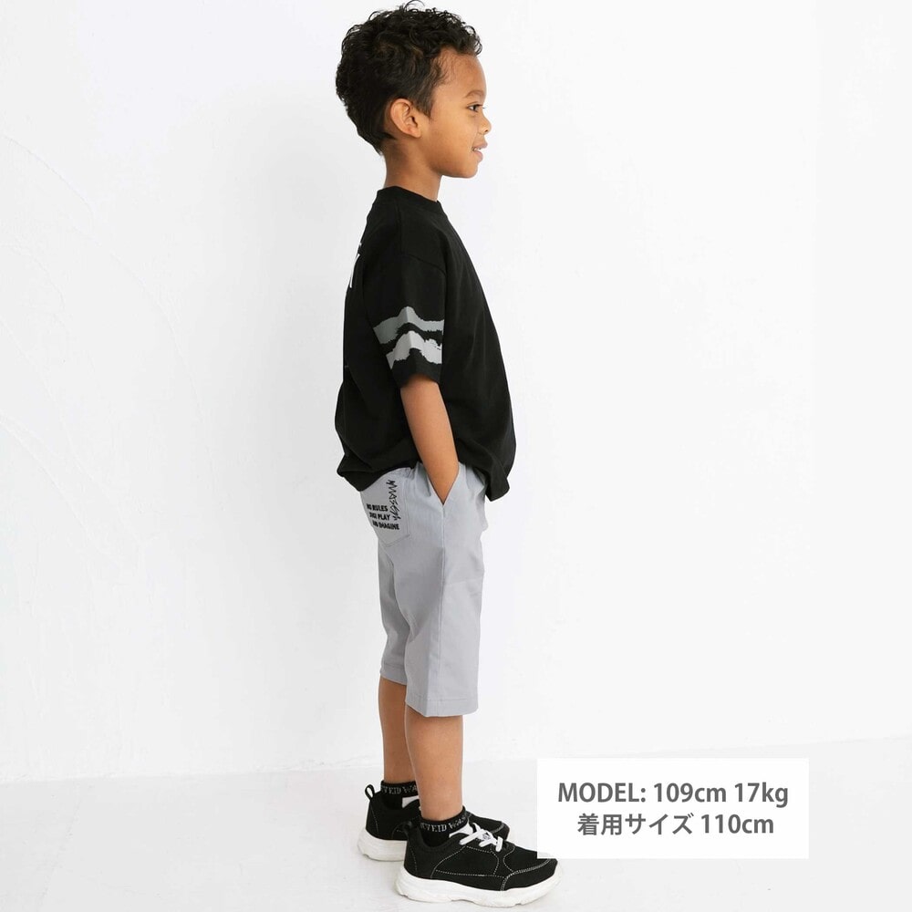 男の子が穿くとすっきり見え、プレッピーな雰囲気に仕上がります。