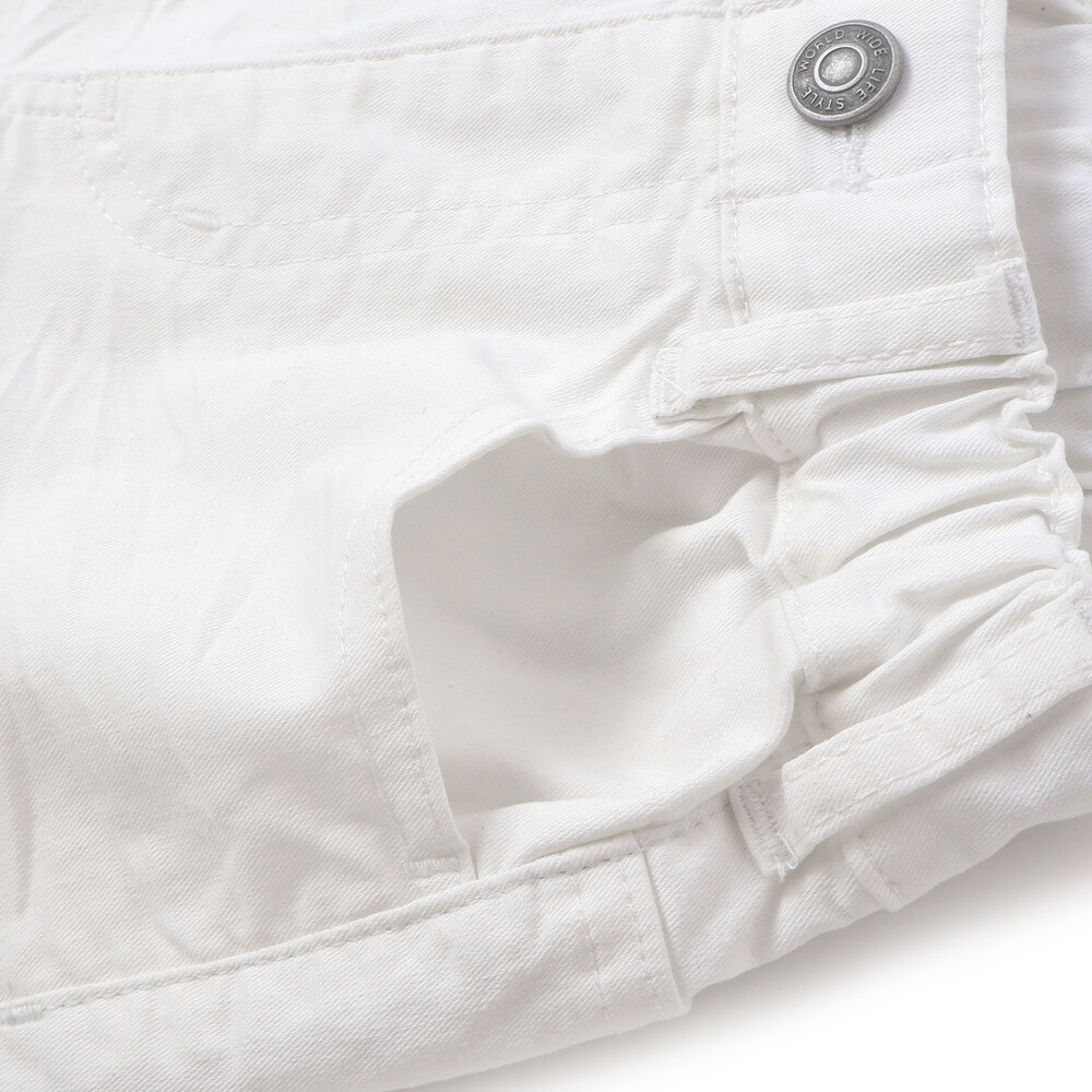 接触冷感のホワイトストレッチデニムを採用し、暑い季節でも快適な着心地を実現。
