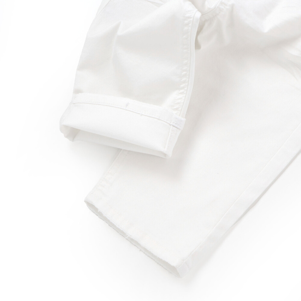 涼しくて強い、動いてキマる、軽やかホワイトデニムパンツ。