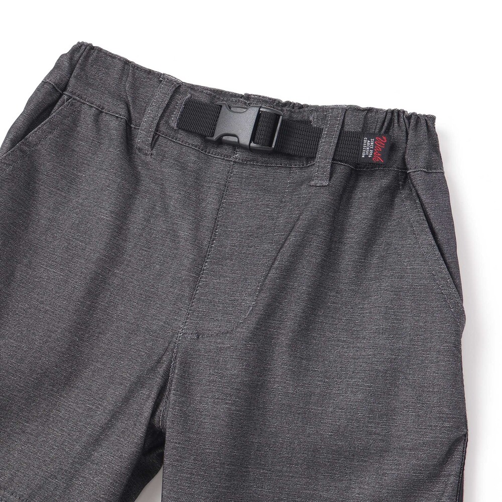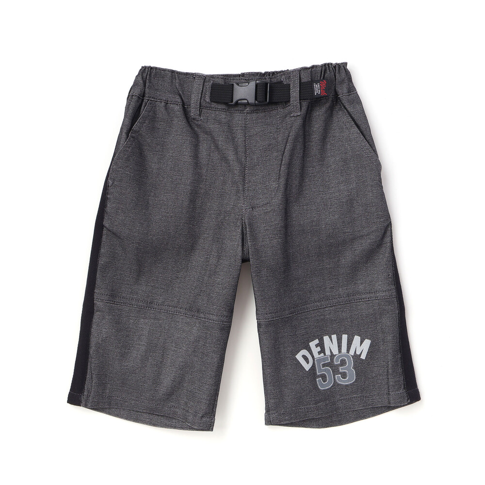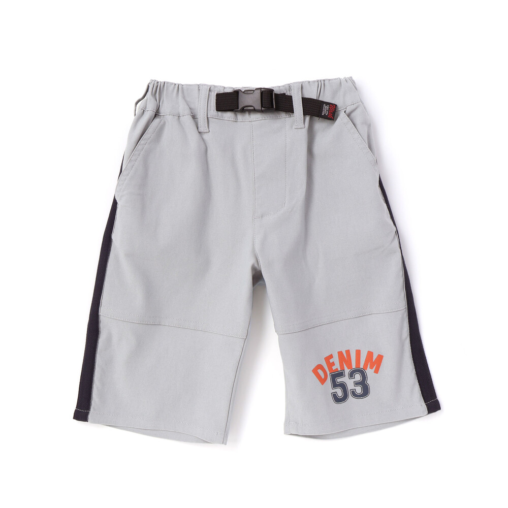 フロントのバックルベルトとサイドのポケットワークが、子ども服らしい遊び心をプラスします。