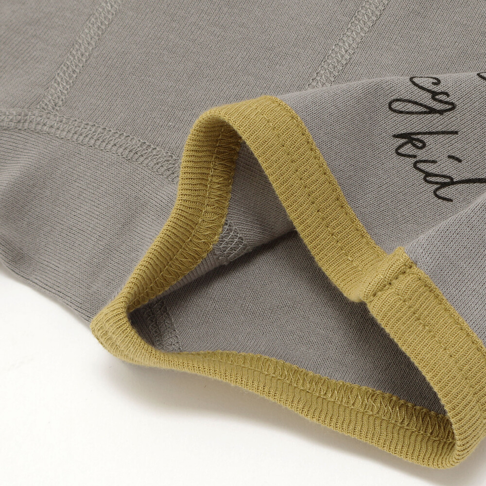 やや厚手の綿100%フライス生地で、耐久性と動きやすさを両立。
