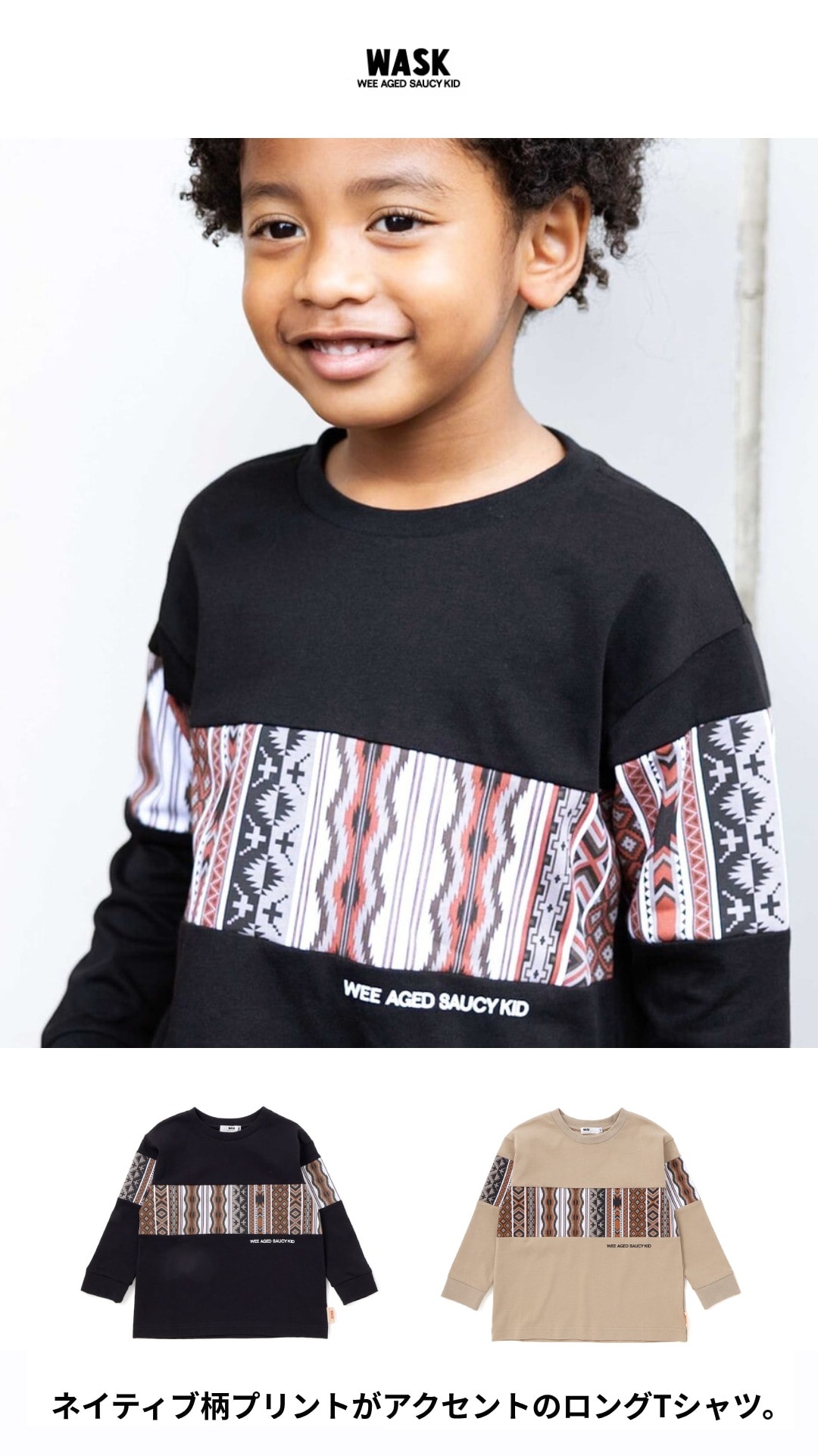 ネイティブ柄プリントがアクセントになったロングTシャツ。