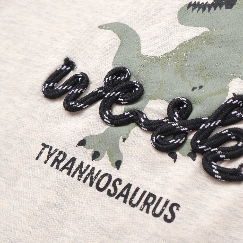 人気のティラノサウルスを大胆にプリントした、存在感たっぷりのTシャツ。