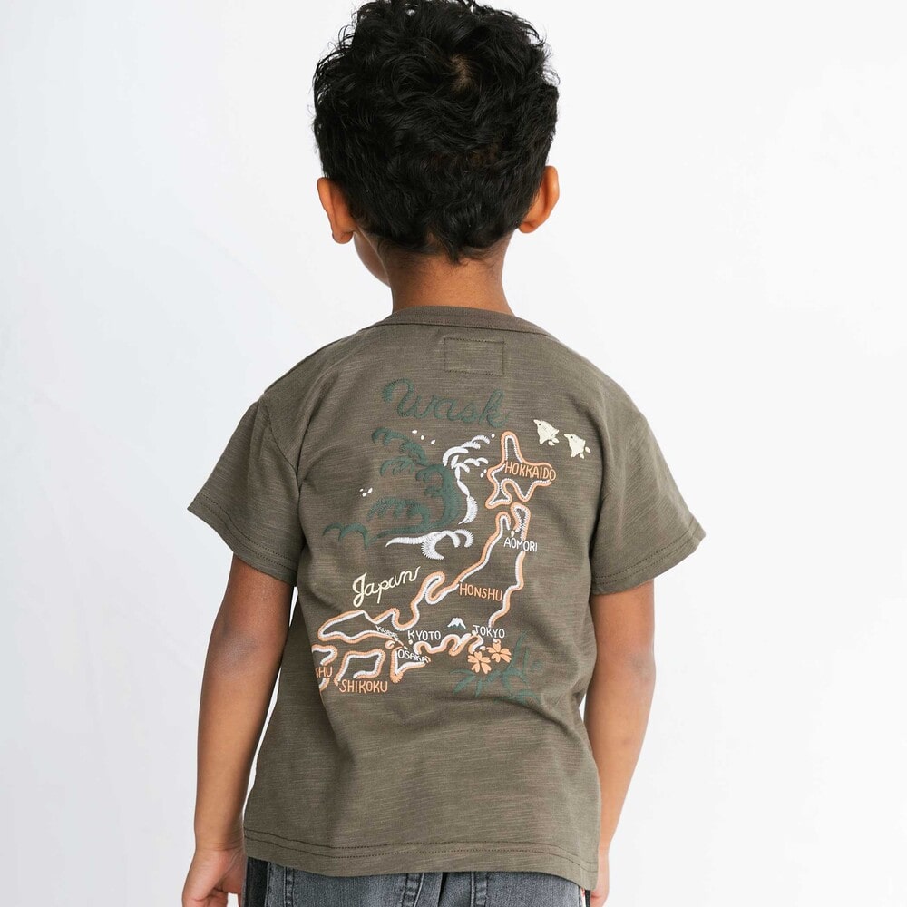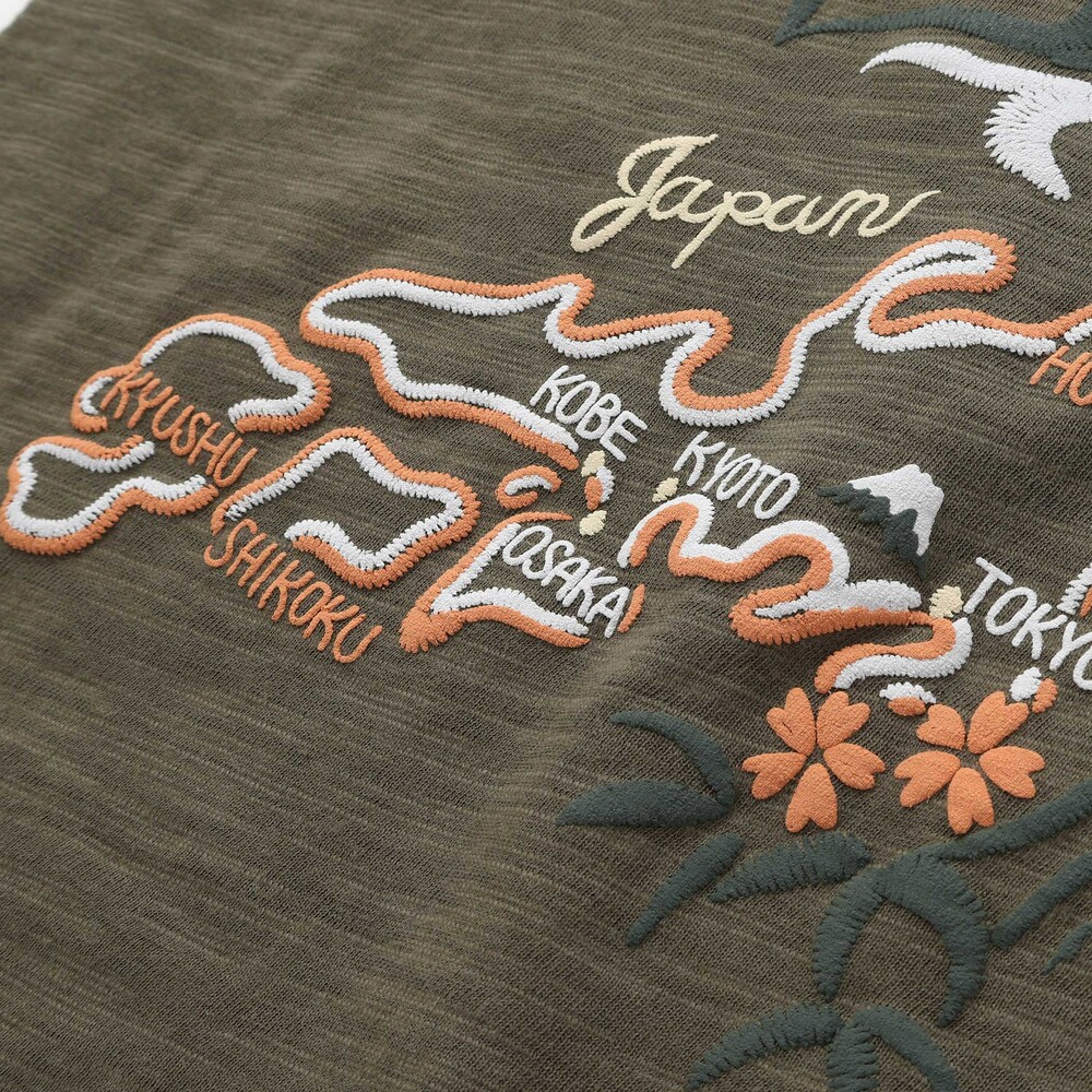アーカイブの“スカジャン風日本地図”を、発泡プリントで立体的に仕上げた特別デザイン。