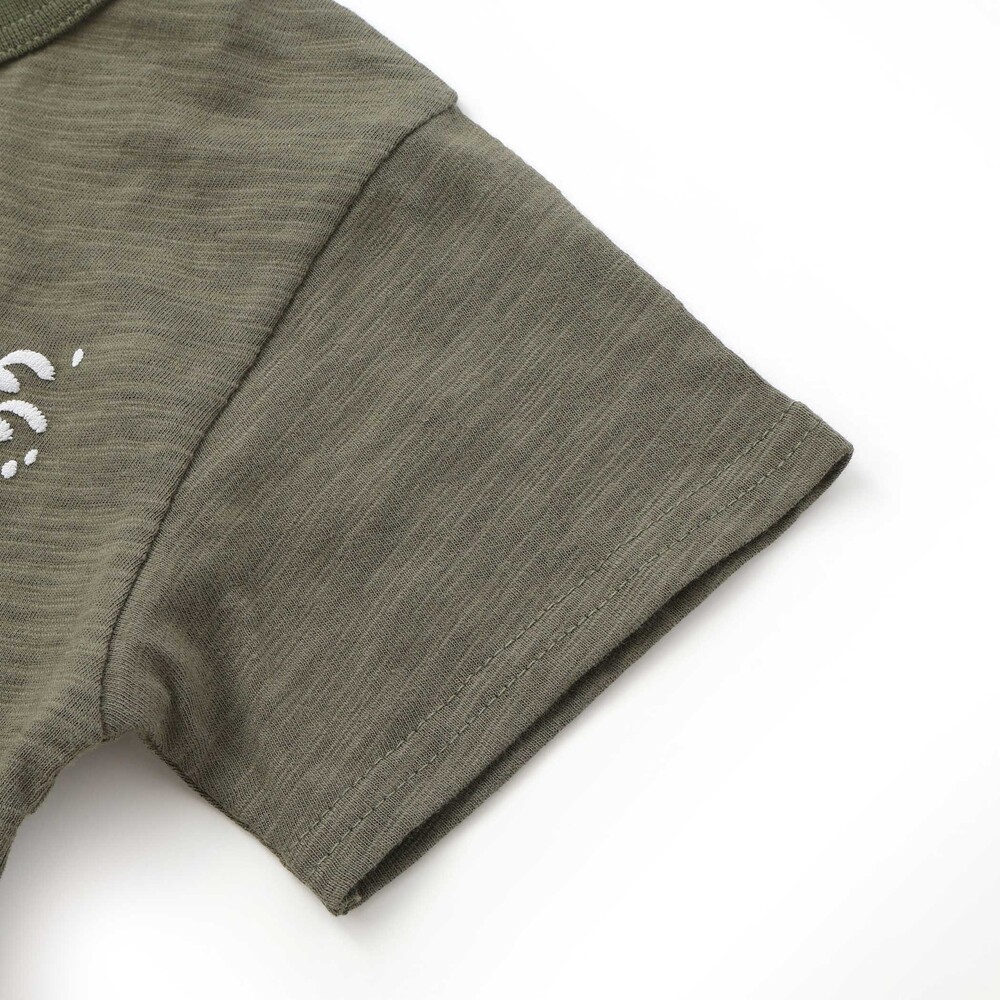 刺しゅう風プリントにすることで肌への刺激をなくし、幼稚園や小学生のデイリーシーンにも安心。