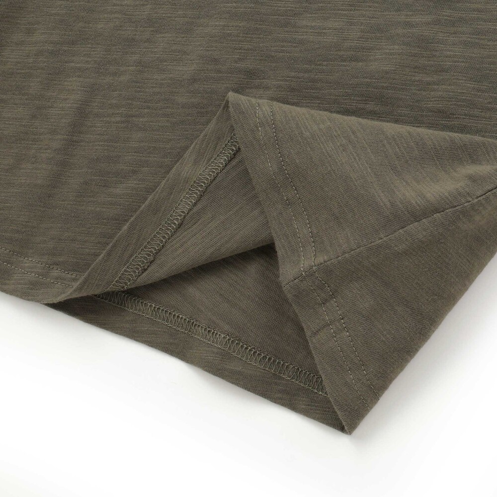 通気性が良く、ほんのりヴィンテージ感のあるスラブ天竺を使用。