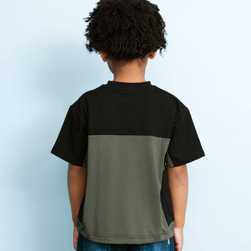 人気のメッシュ切替をサイド~背中に配置し、夏でも快適に動けるキッズTシャツ。
