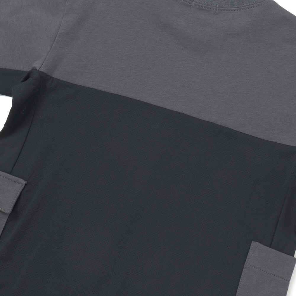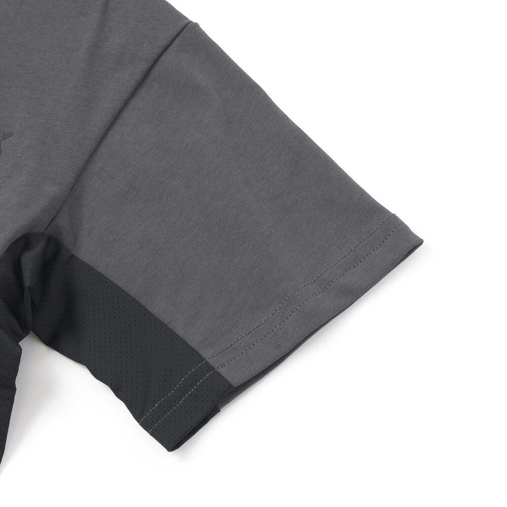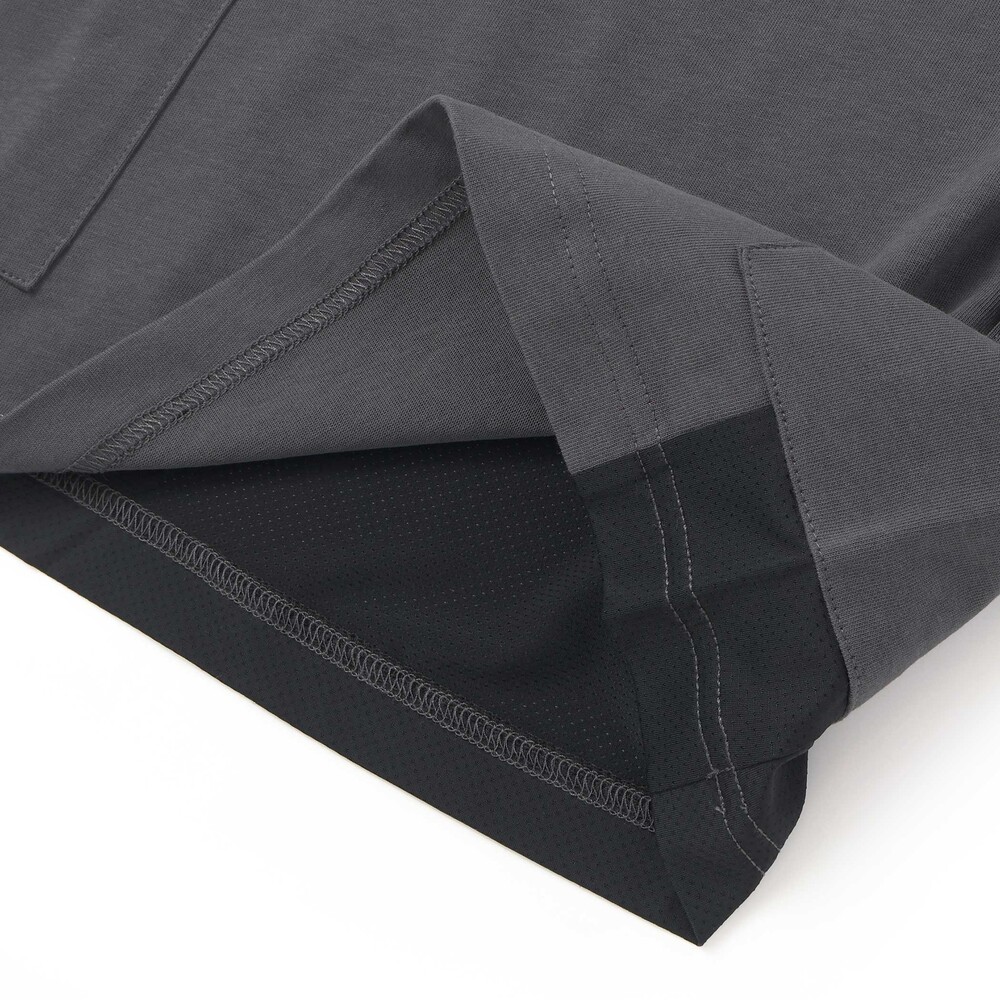 脇と背中に速乾メッシュを組み合わせ、通気性をアップして汗ばむ季節も快適。