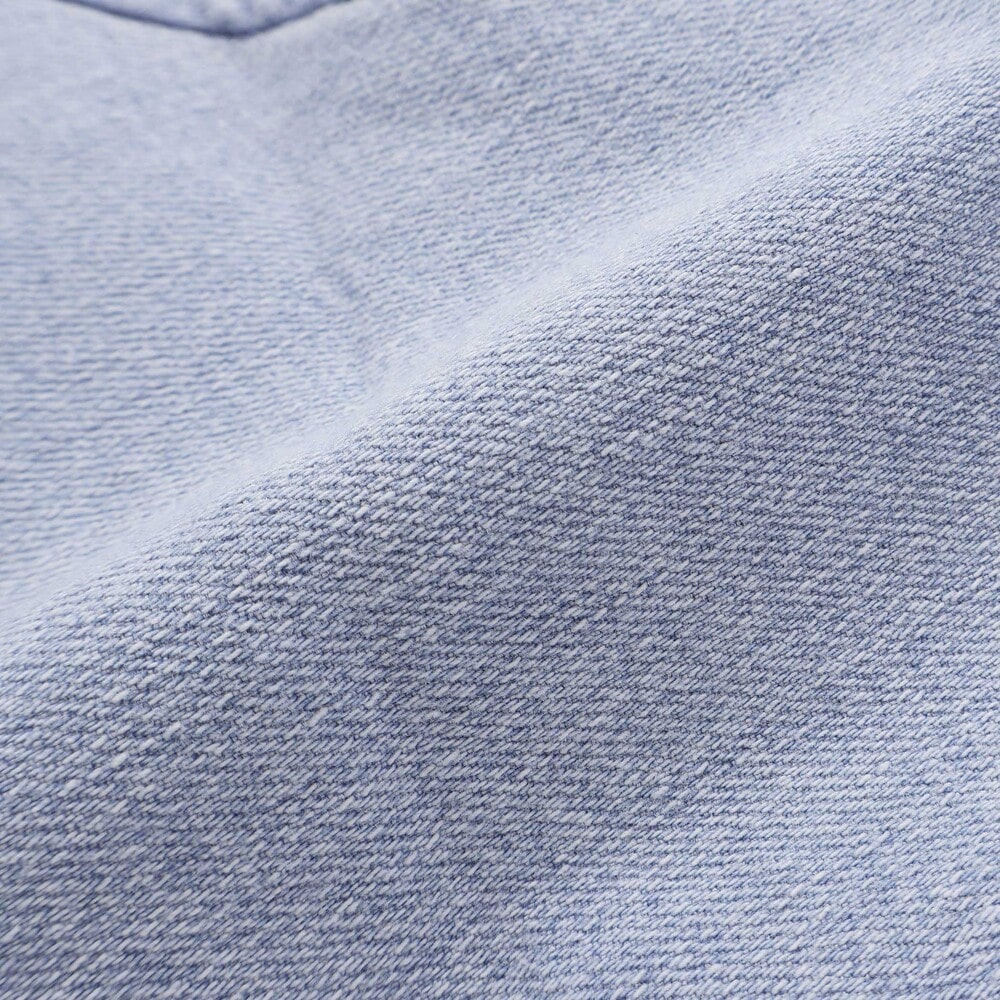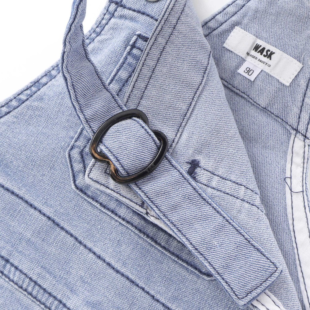 ブルーのストレッチデニムをベースに、肩ひもの濃色デニムでさりげなくデザイン性をプラス。