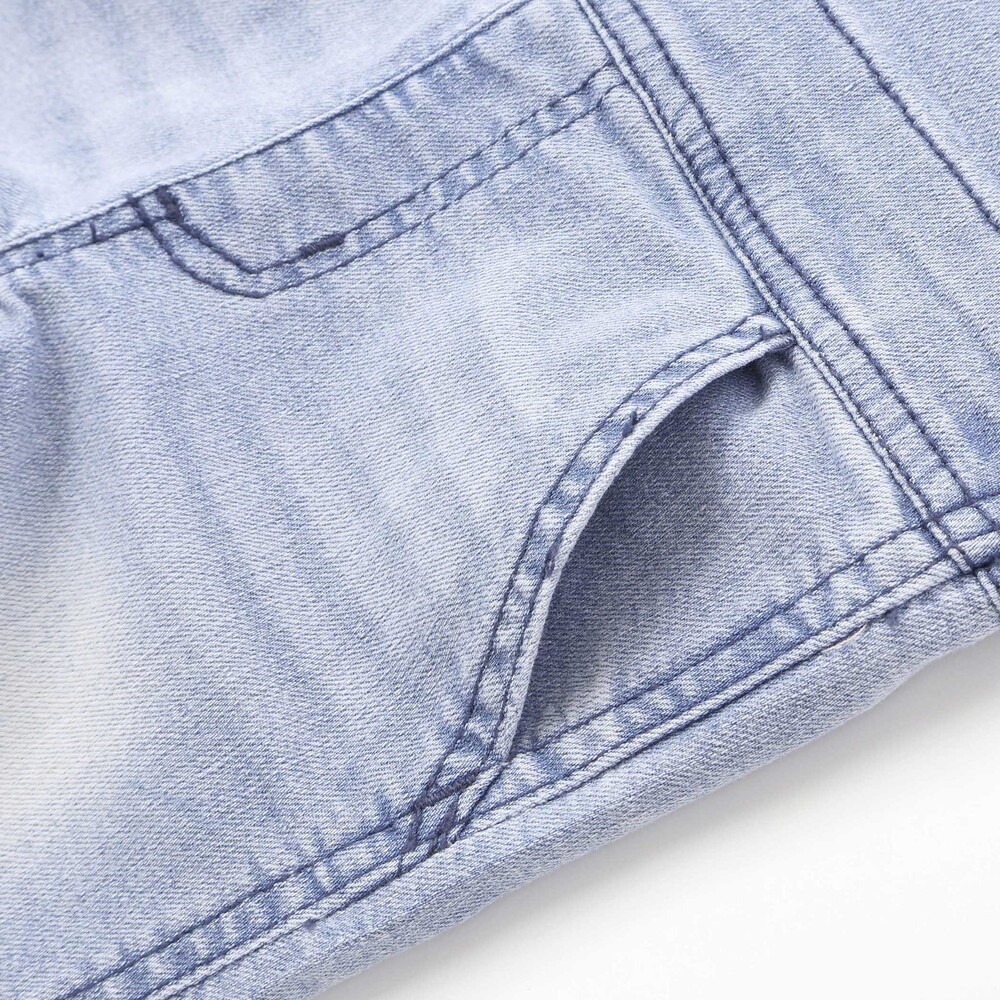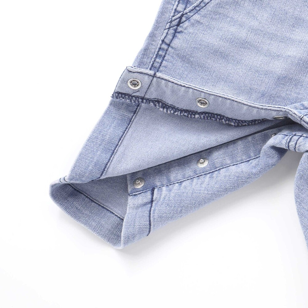 80〜90cmはホック付きで着脱がスムーズ、100cmはより“本格デニム”な仕様に。
