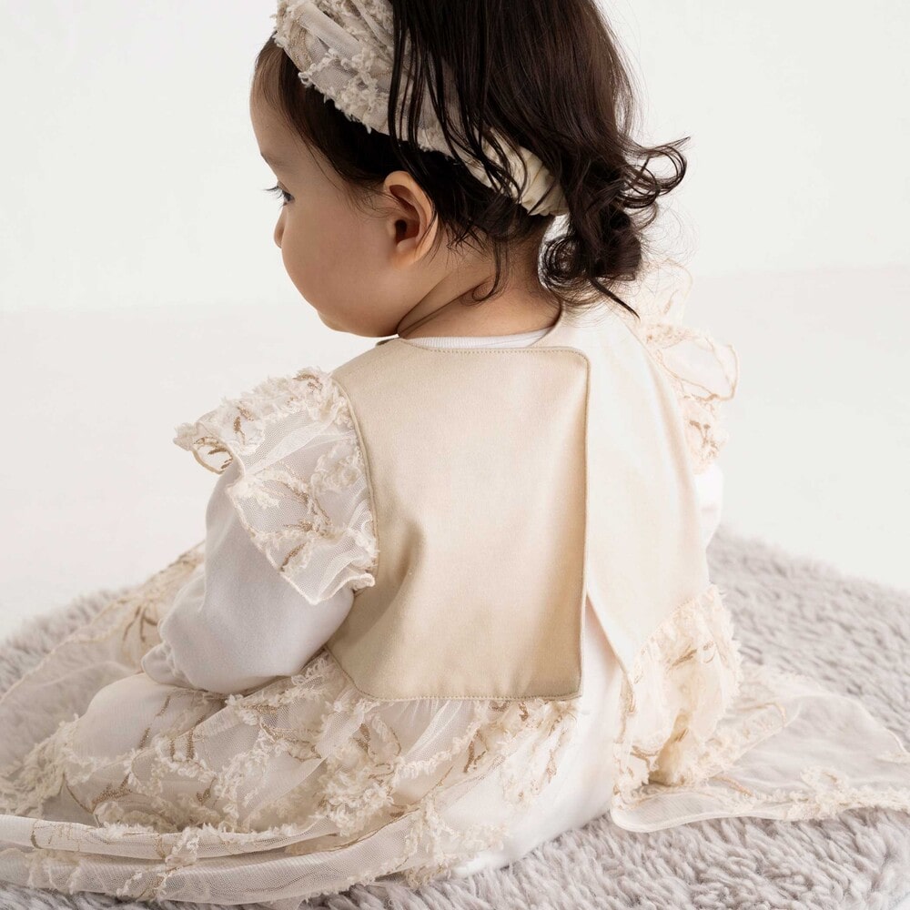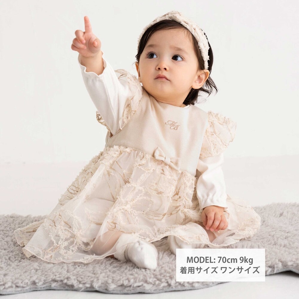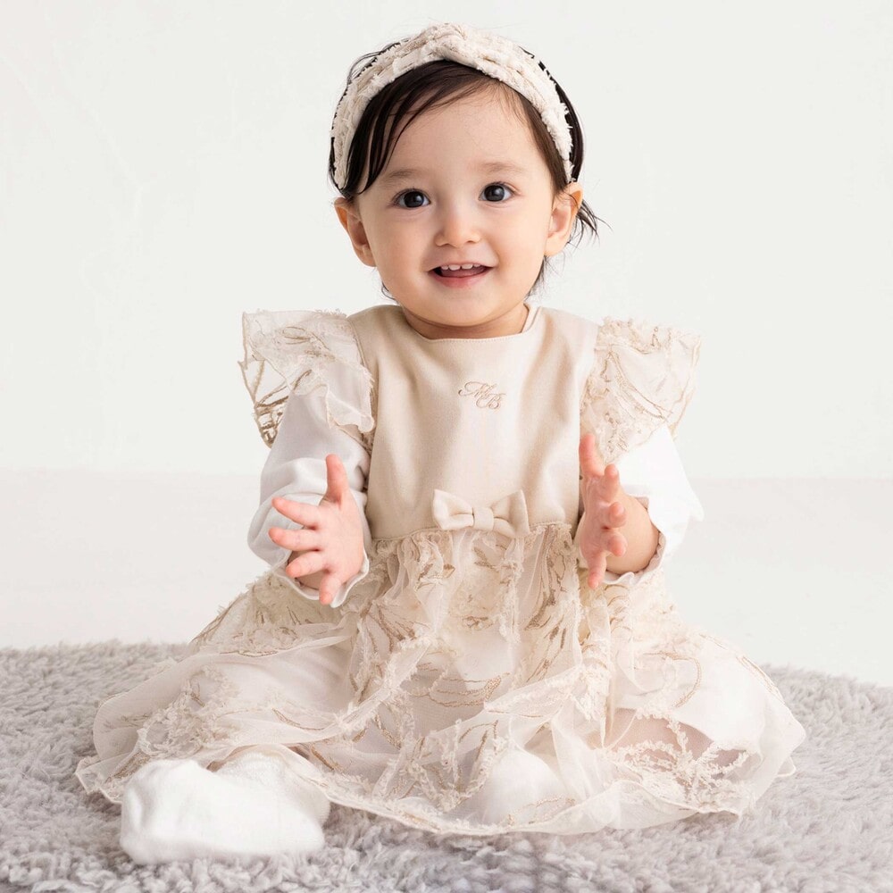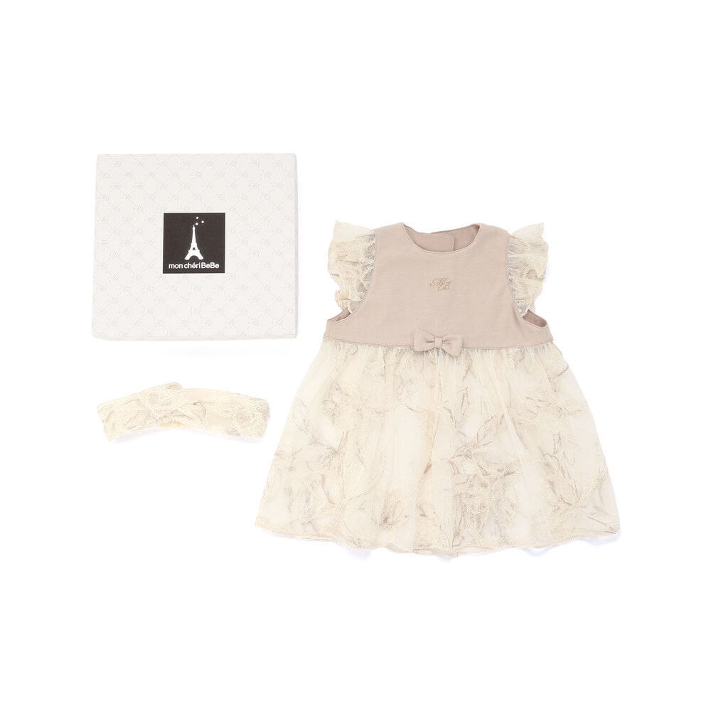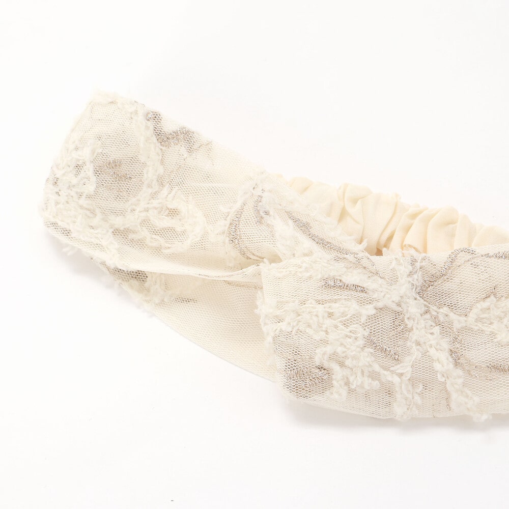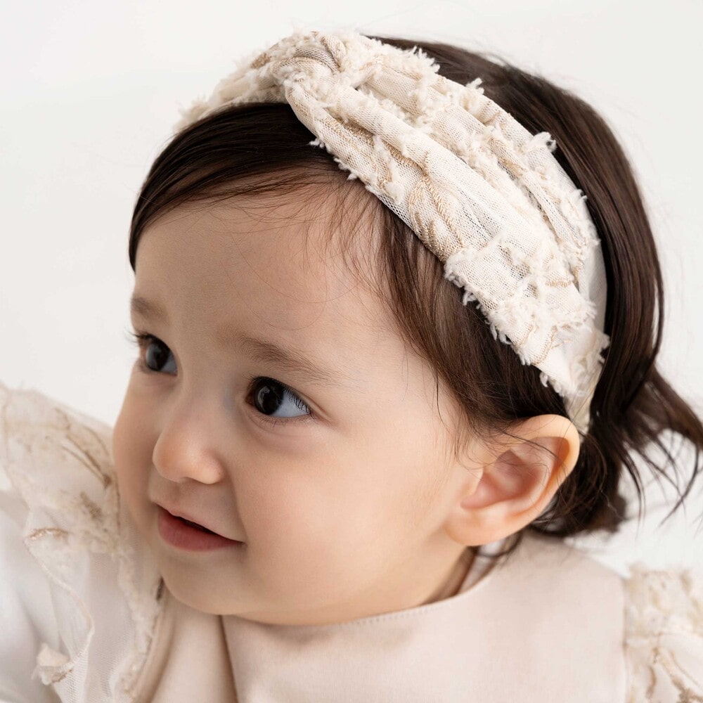 セットのヘアバンドにも同じチュールモール刺しゅうが施されており、統一感のあるコーディネートが楽しめます。