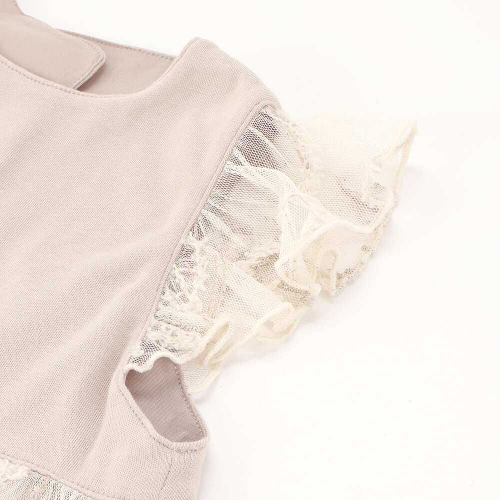 袖口には可愛らしいフリルをあしらい、上身頃には肌触りの良いスムース素材を使用しています。
