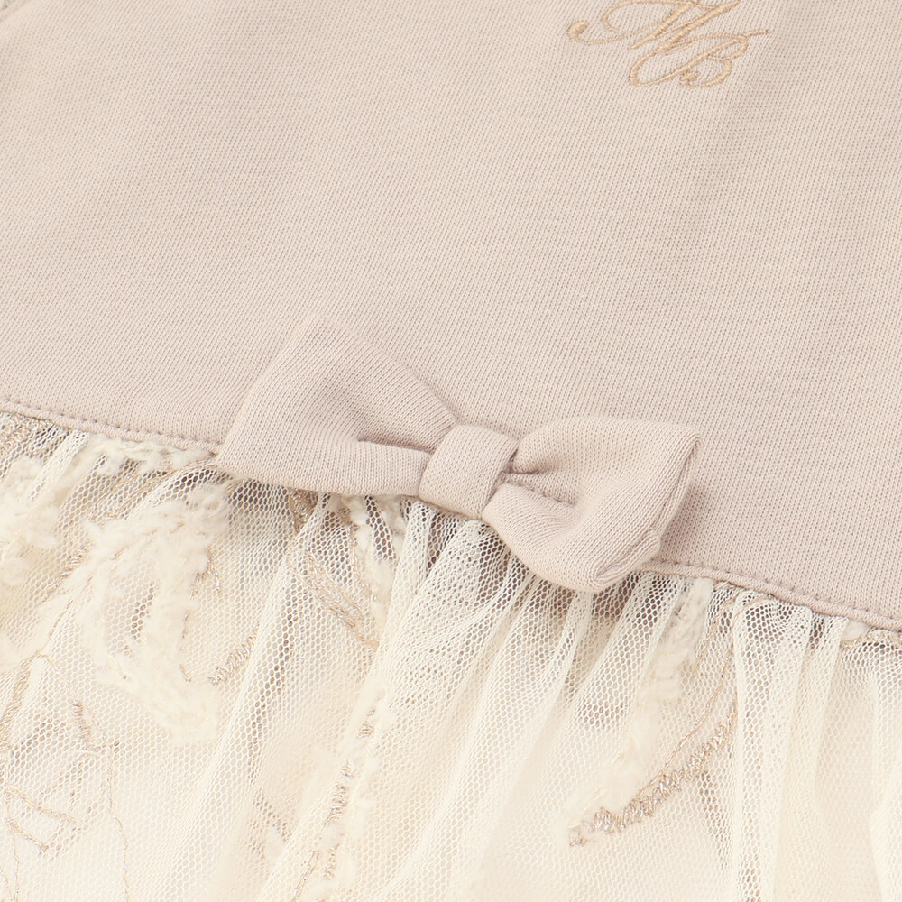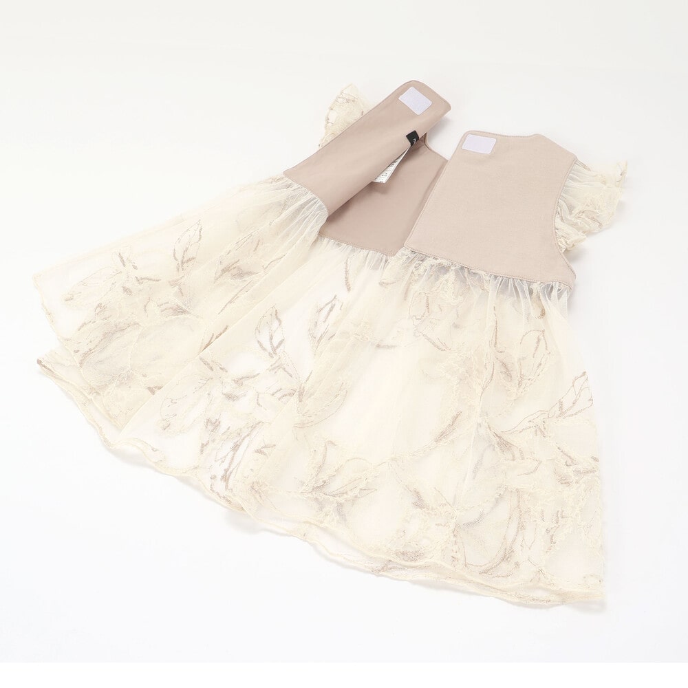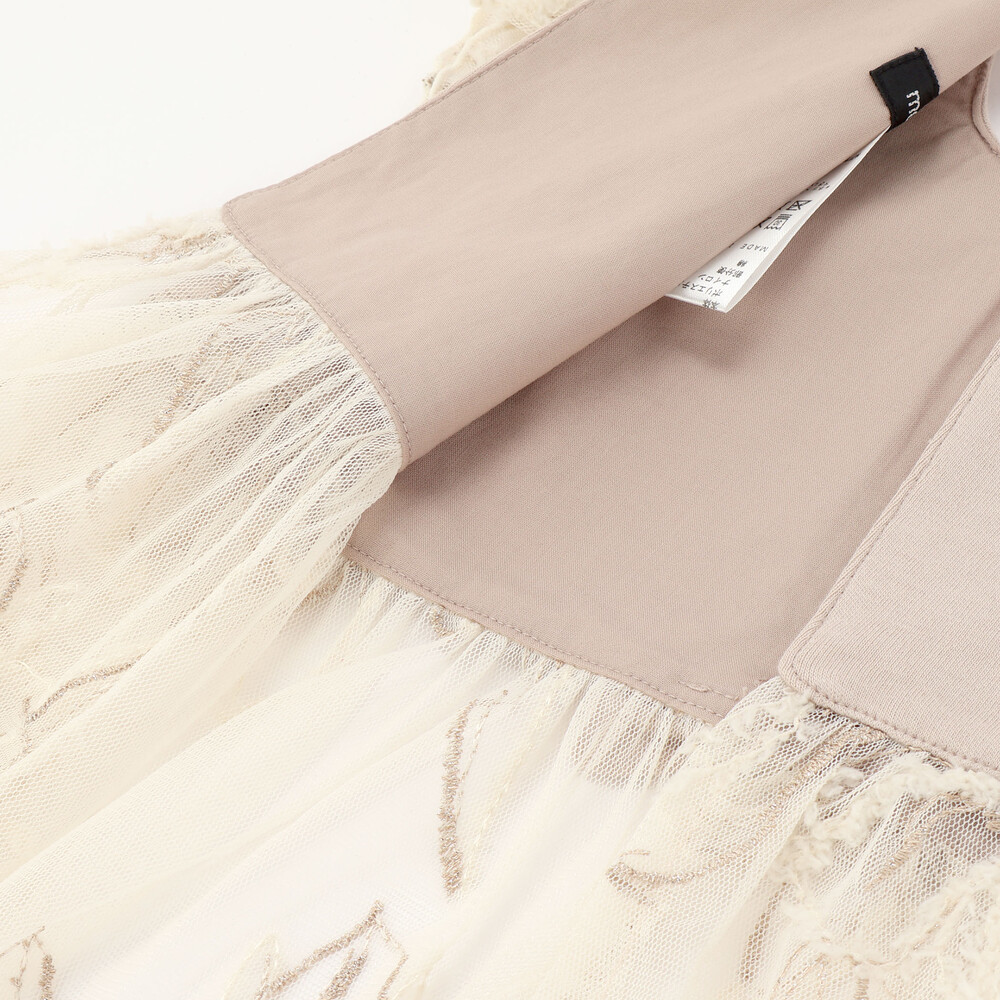 花柄のチュールモール刺しゅうが施された、まるでワンピースのような華やかなスタイです。