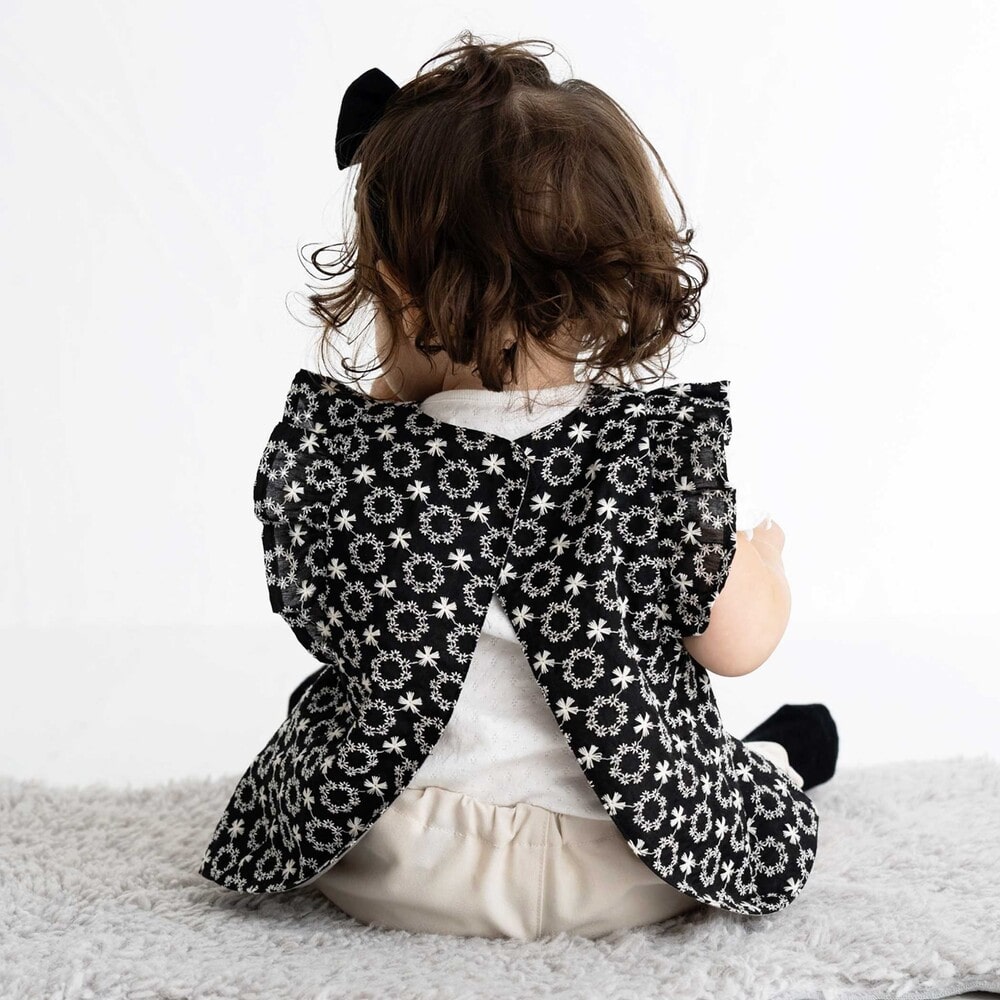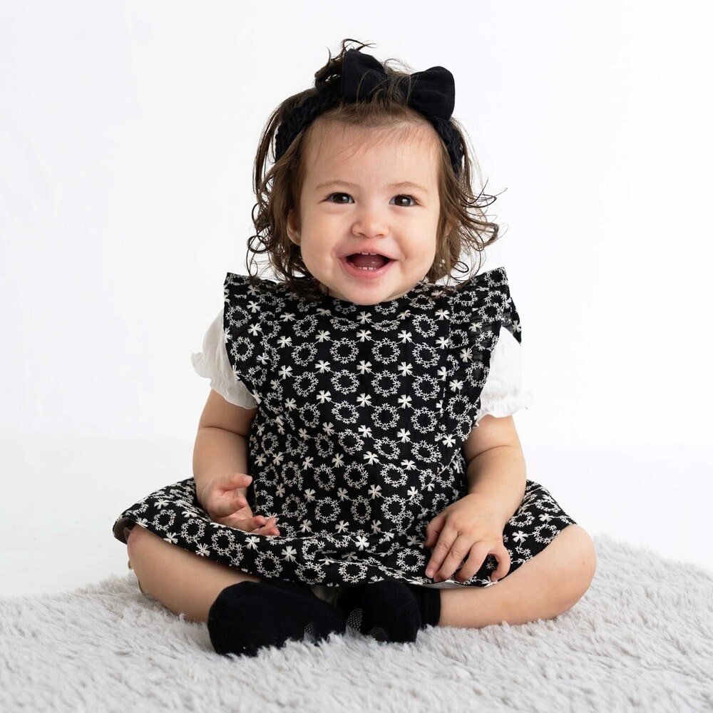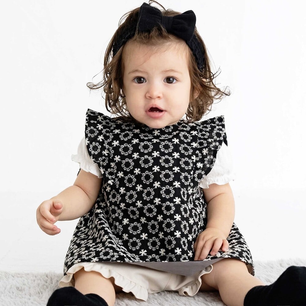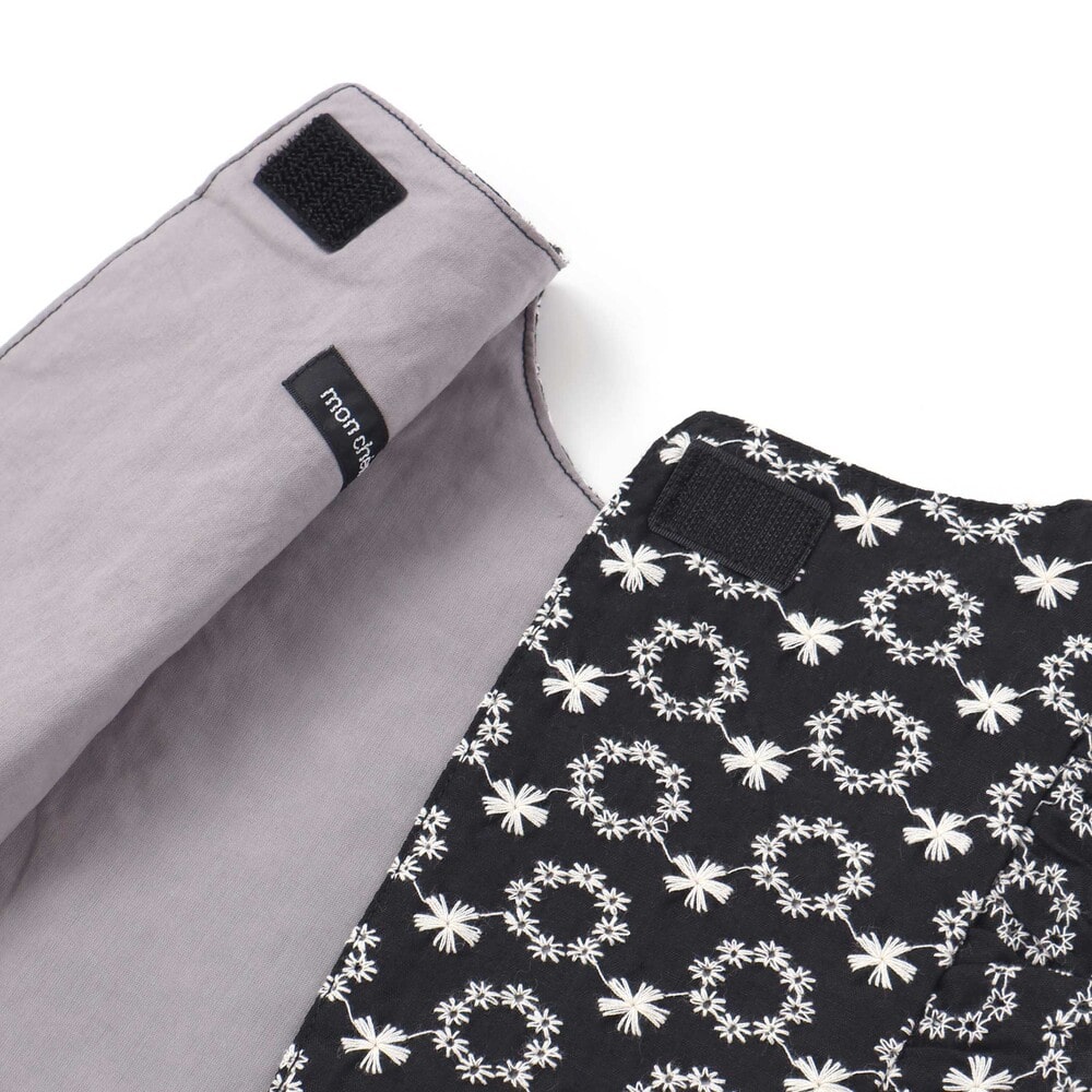 ブロード防水シートのボンディング素材を使用し、よだれや食べこぼしをしっかり防いでくれるため、見た目だけでなく実用性にも配慮しています。