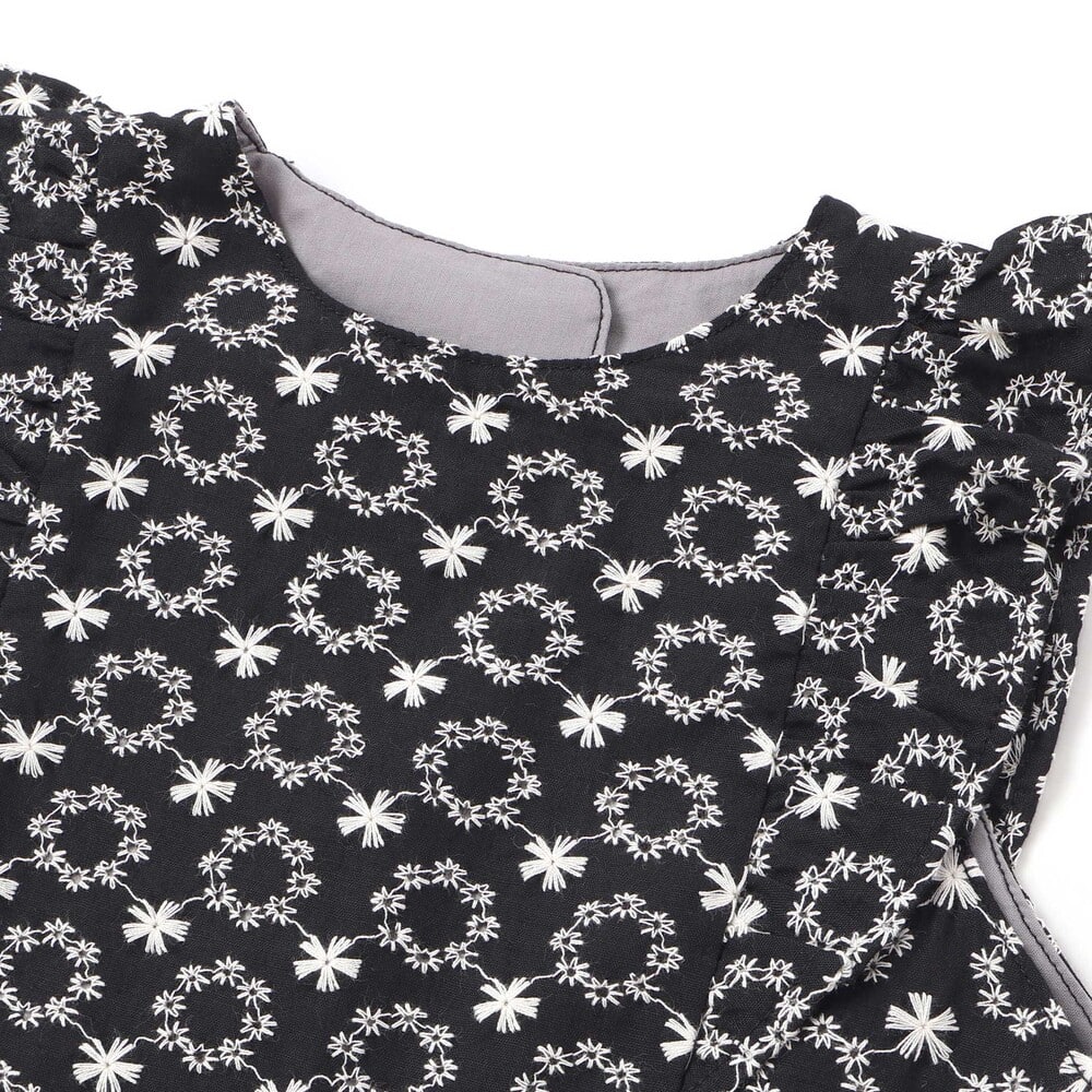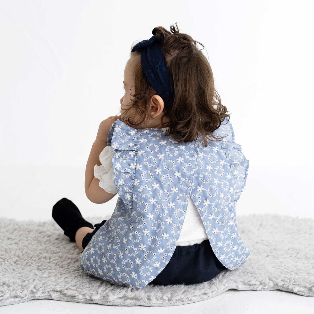 上品な花柄が目を引く、女の子用のチュニック風スタイとパンツのセットアイテム。