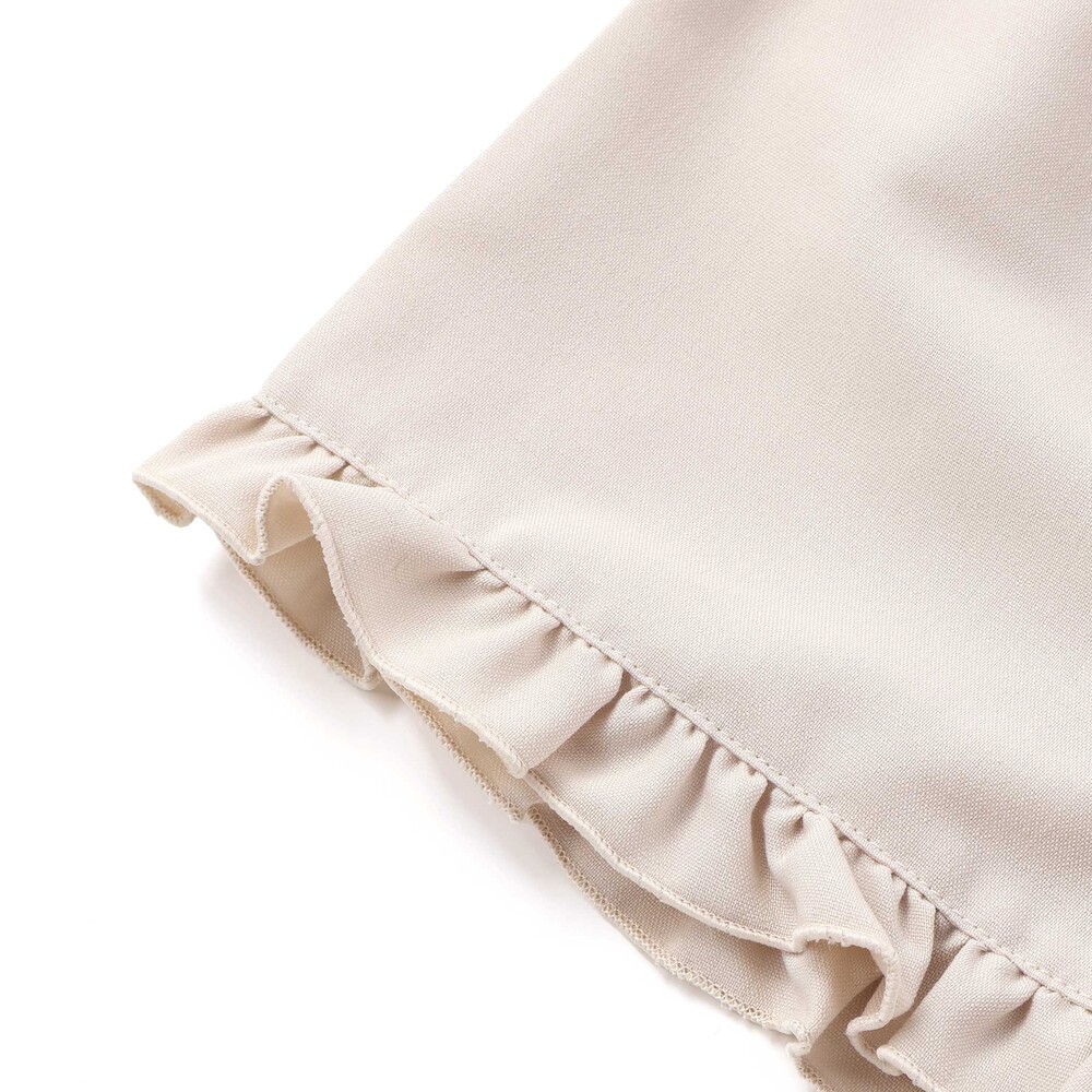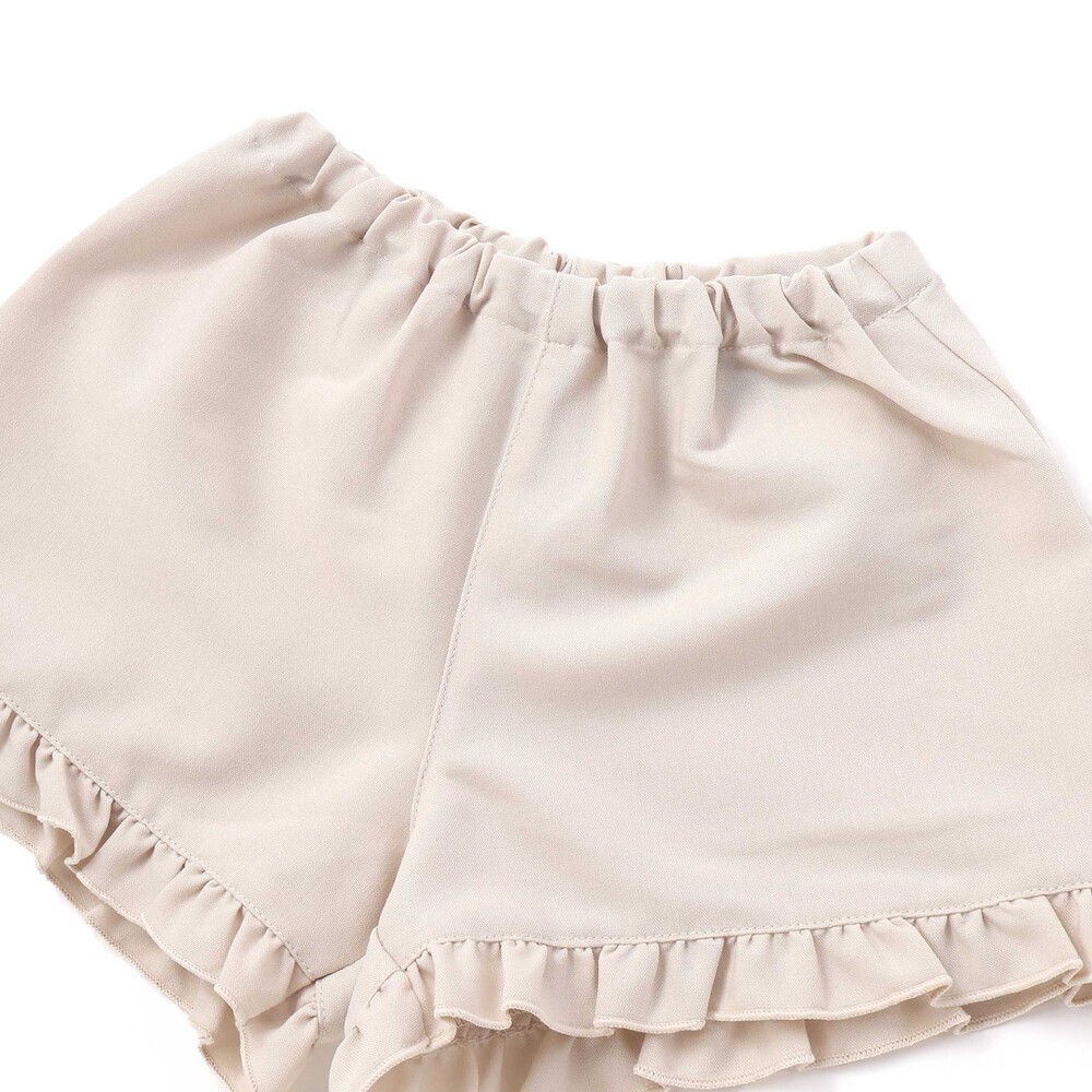 パンツの裾にはフリルを施し、動くたびに華やかさが引き立つデザインに仕上げています。