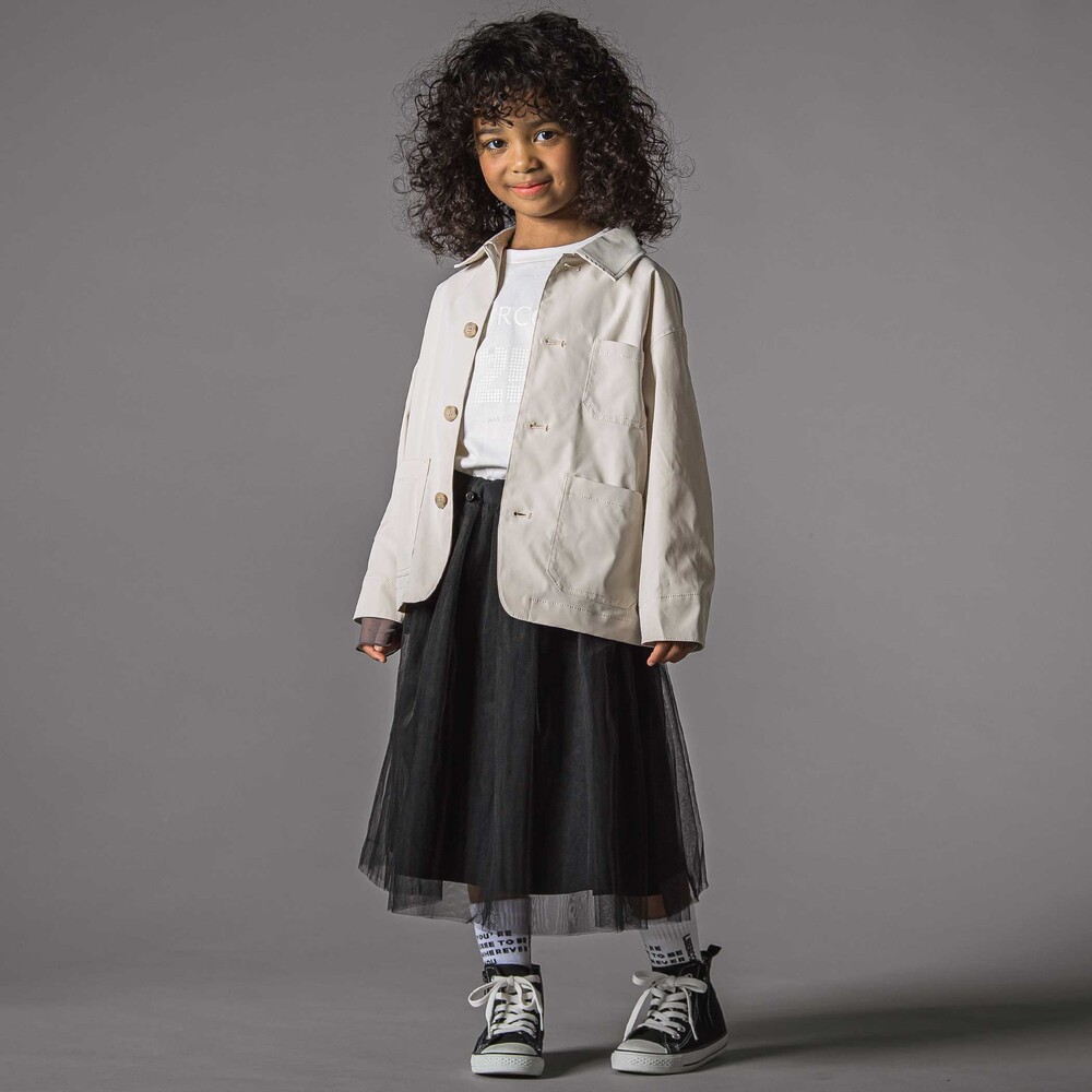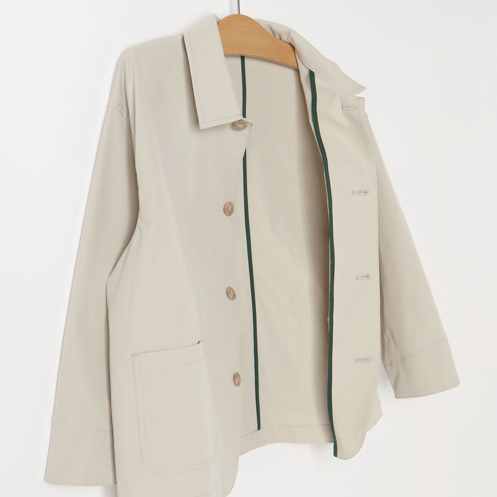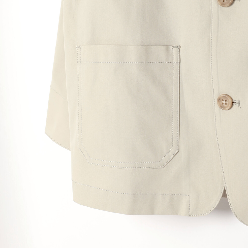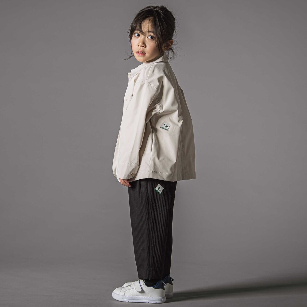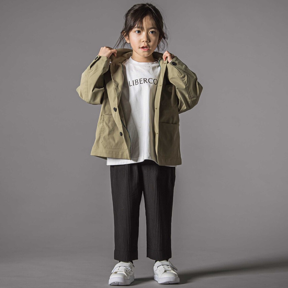 ジャケットはゆとりのあるシルエットで、前ボタンを開けてラフに羽織るのもおすすめ。