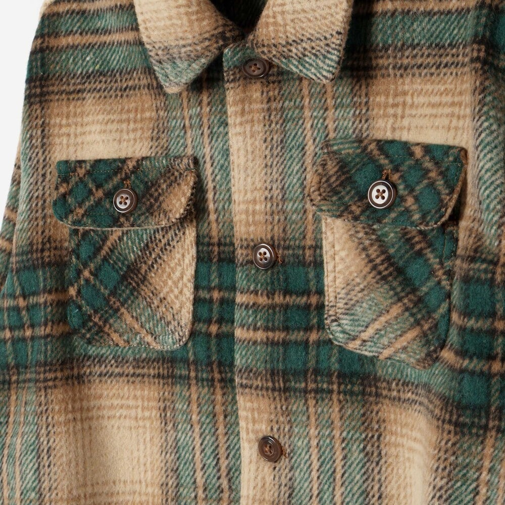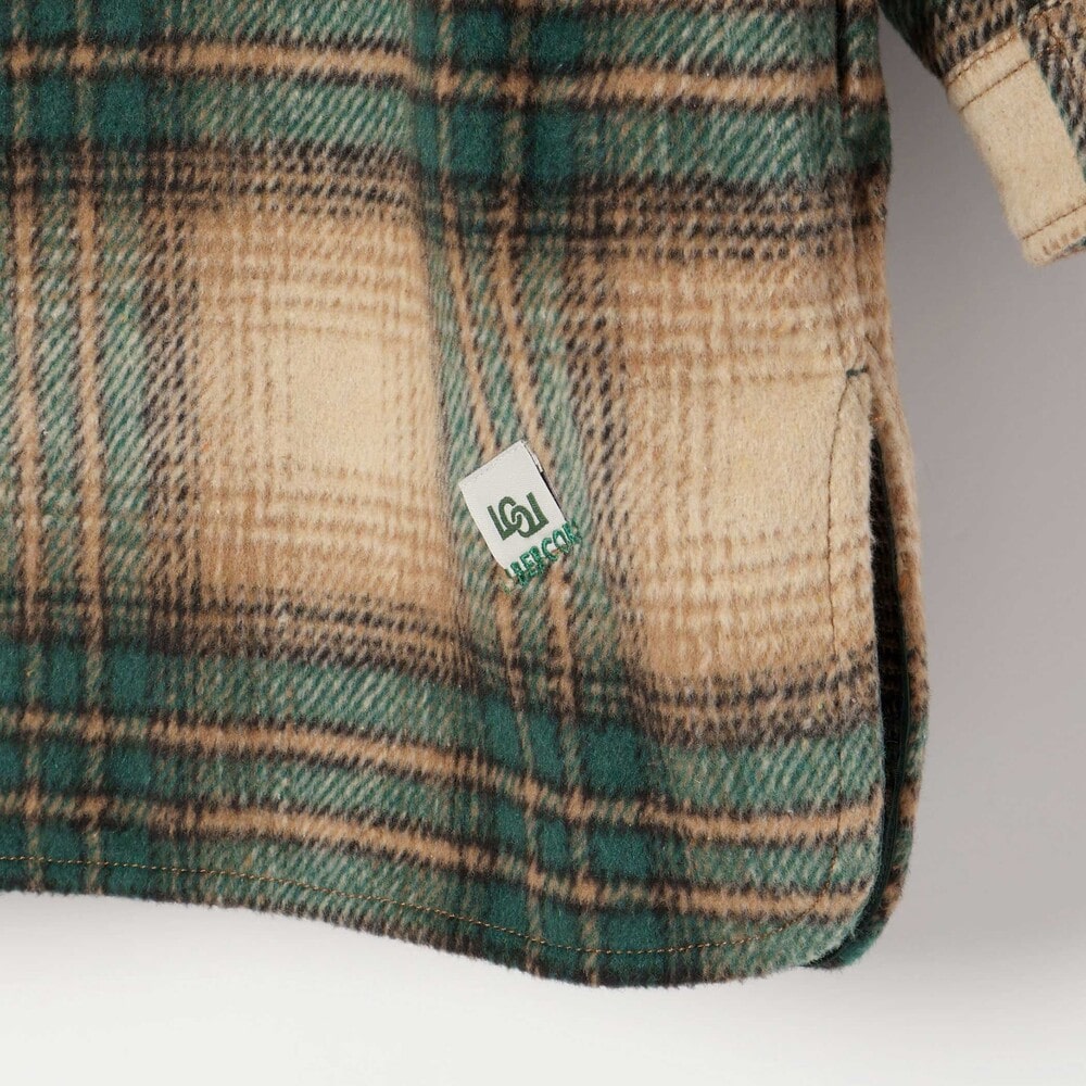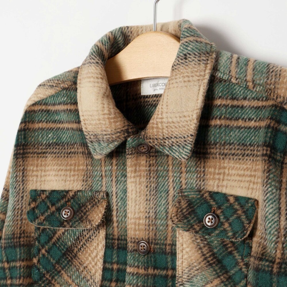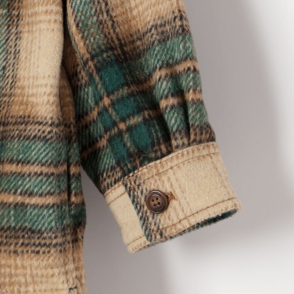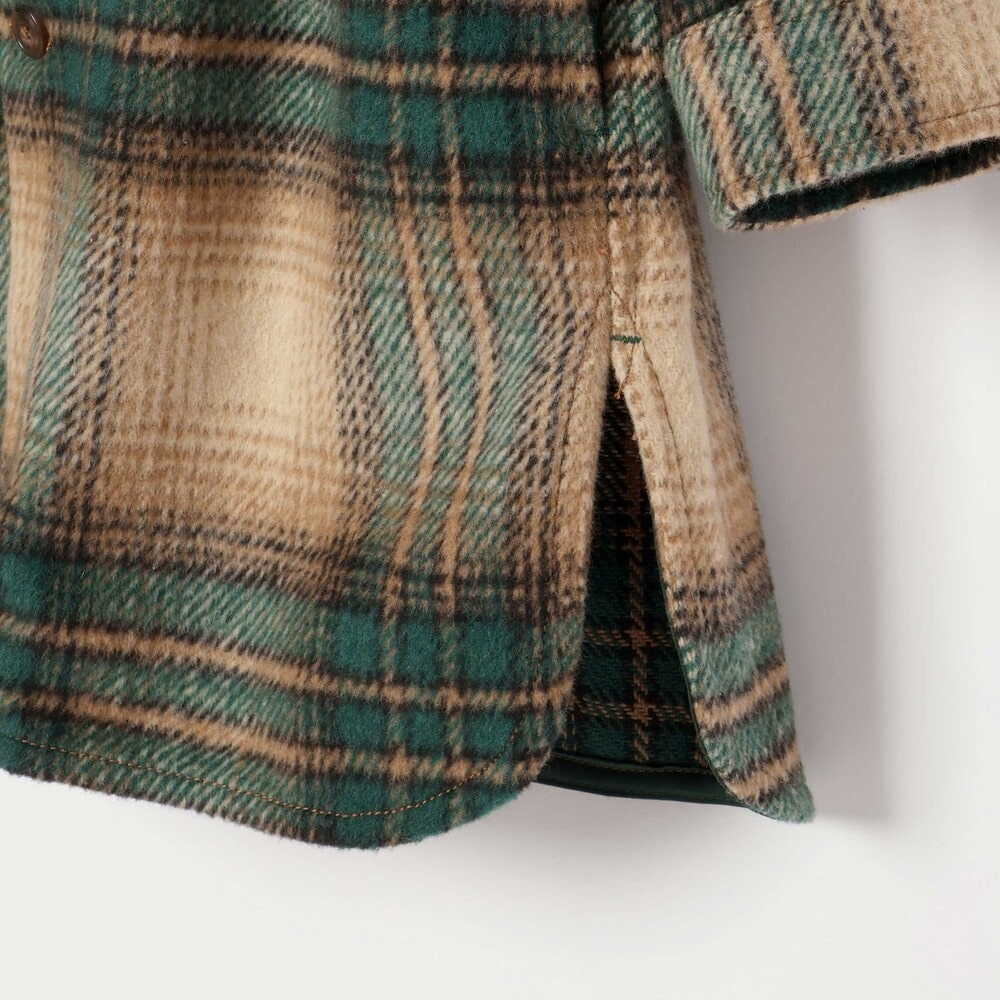 グリーン・ベージュ・ブラウンを基調としたタータンチェック柄が、秋冬らしい温もりとクラシックな雰囲気を演出。