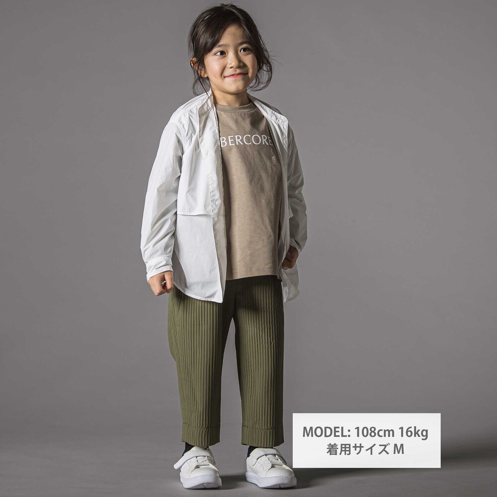 前ボタンタイプなので、Tシャツの上にさっと羽織るだけでコーディネートが完成します。