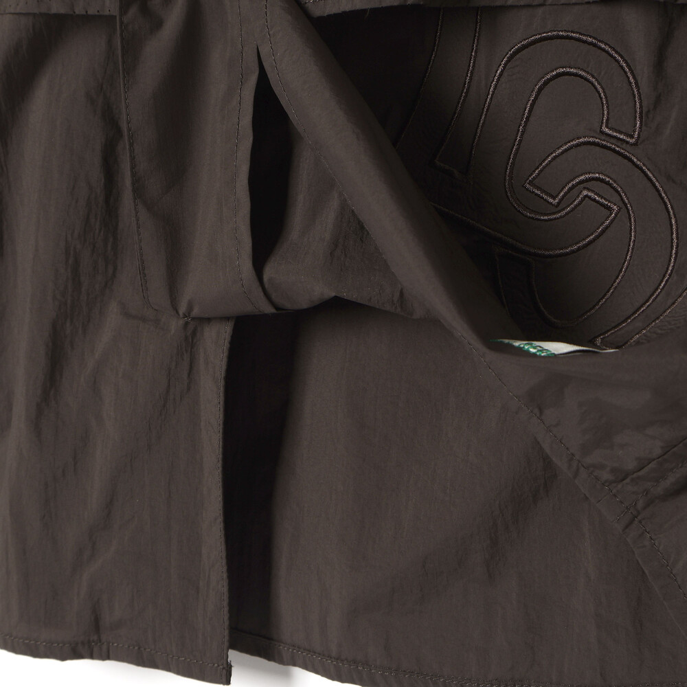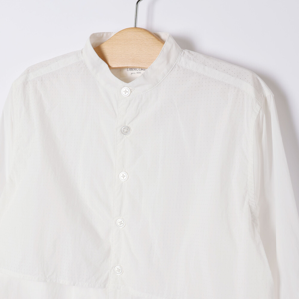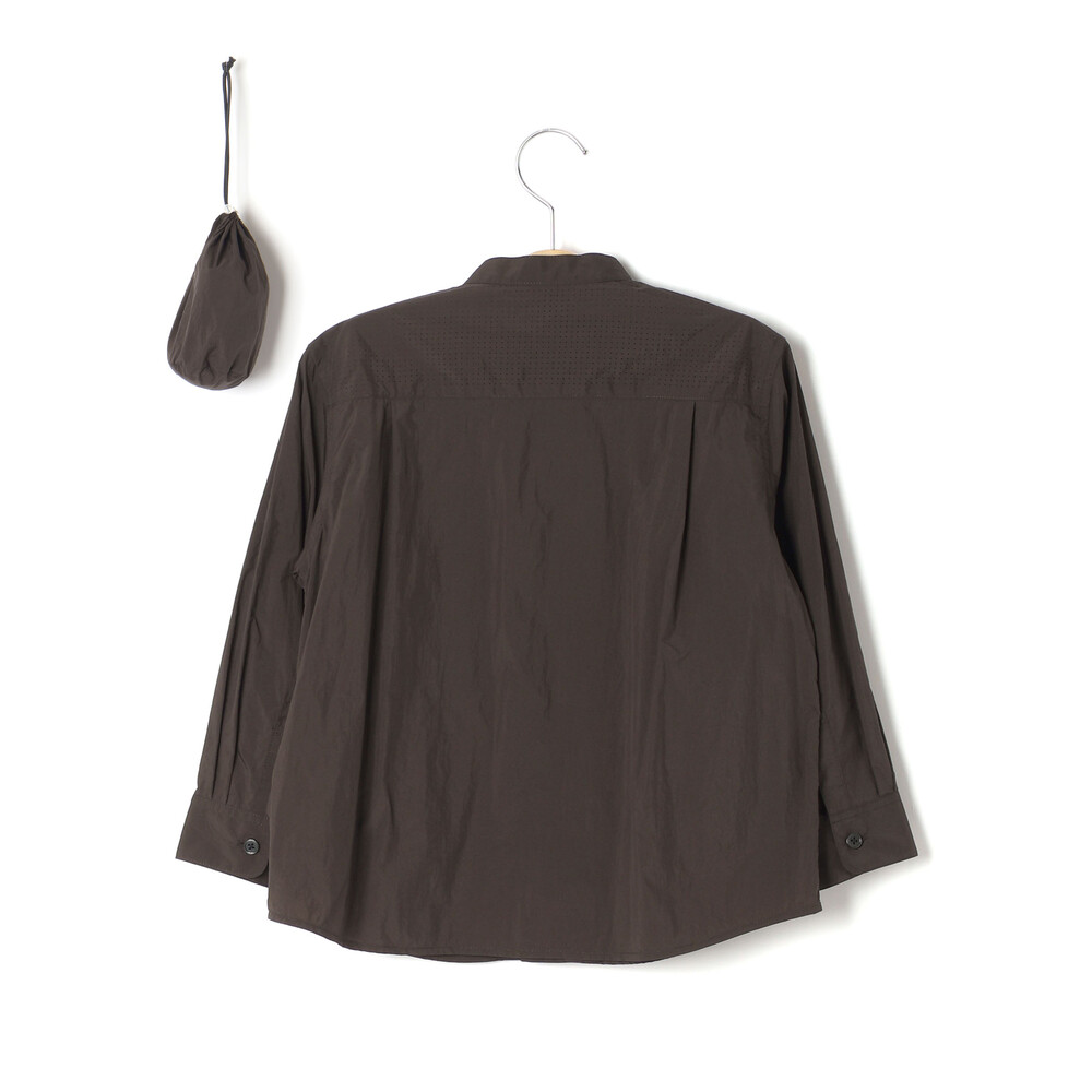 ナイロンタフタ生地を使用したシャツは、軽量でさらりとした質感が特徴。