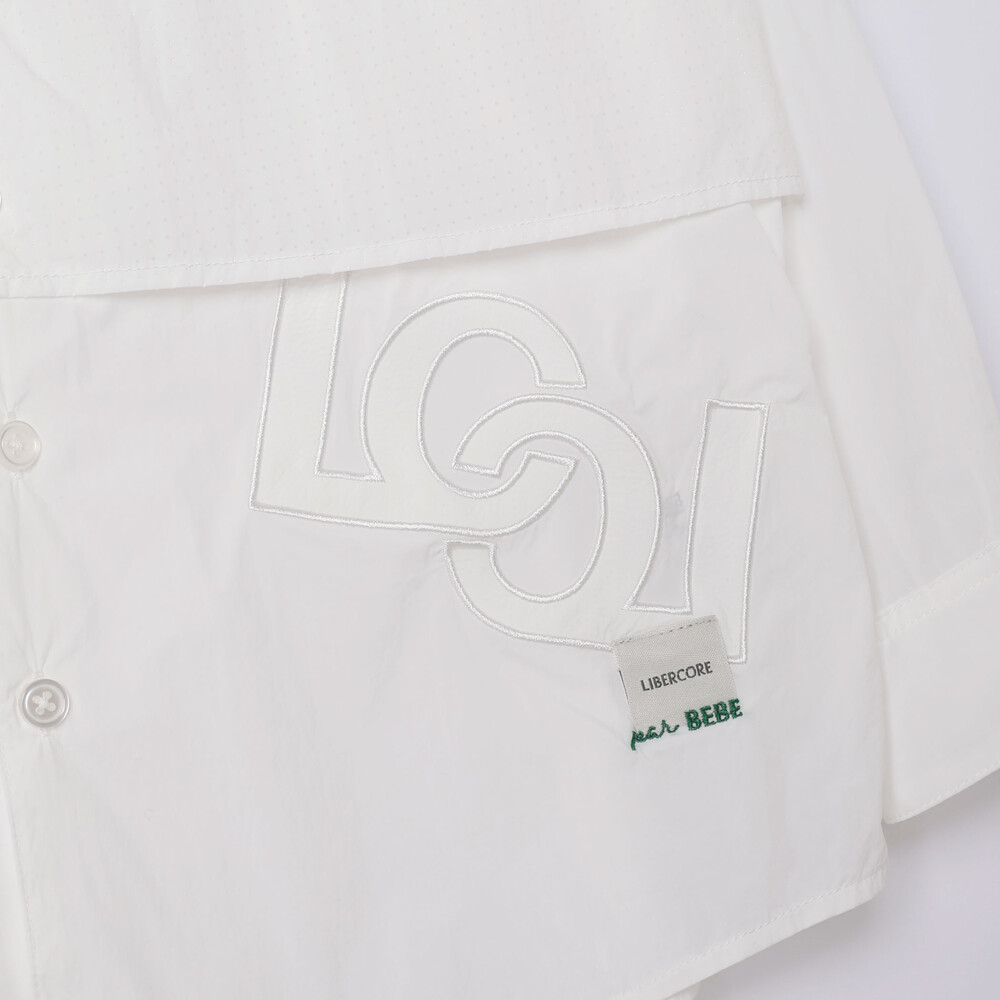 胸元の切り替えの左側にはロゴパッチ刺しゅうがさりげなくアクセントに。