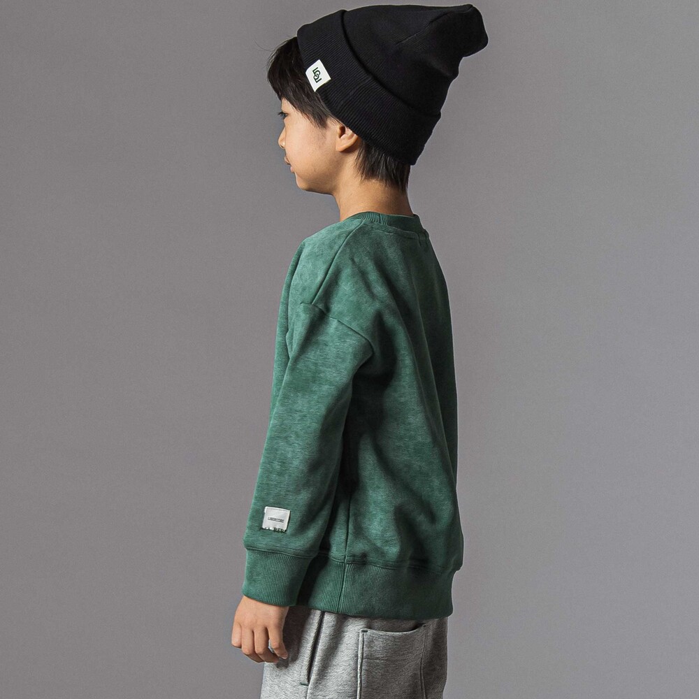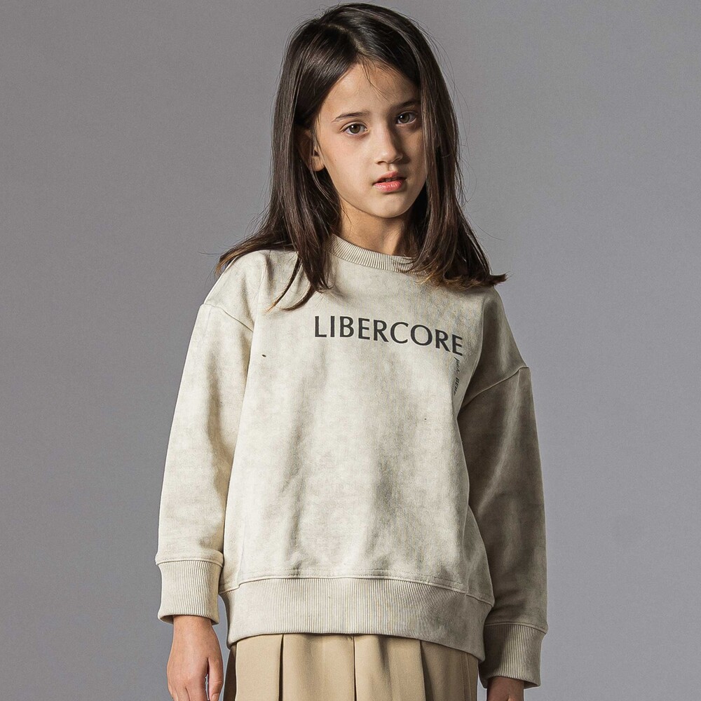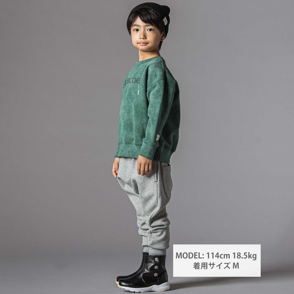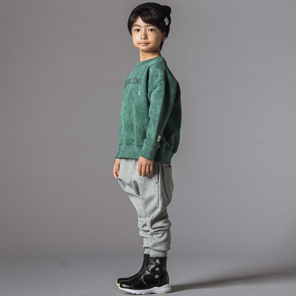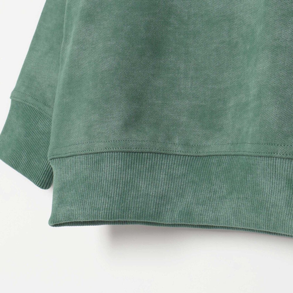 ロング丈のトレーナーに、ダメージ感のあるプリントを施し、淡いカラーでヴィンテージ風に仕上げました。