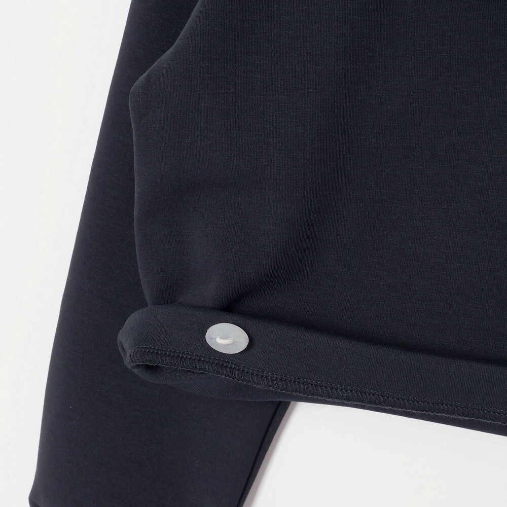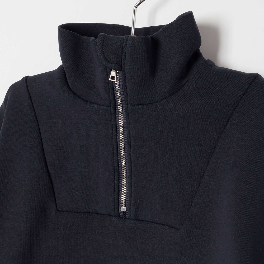 首元にはファスナーカバー付きのハーフジップ仕様で、着脱しやすく見た目もスマートです。