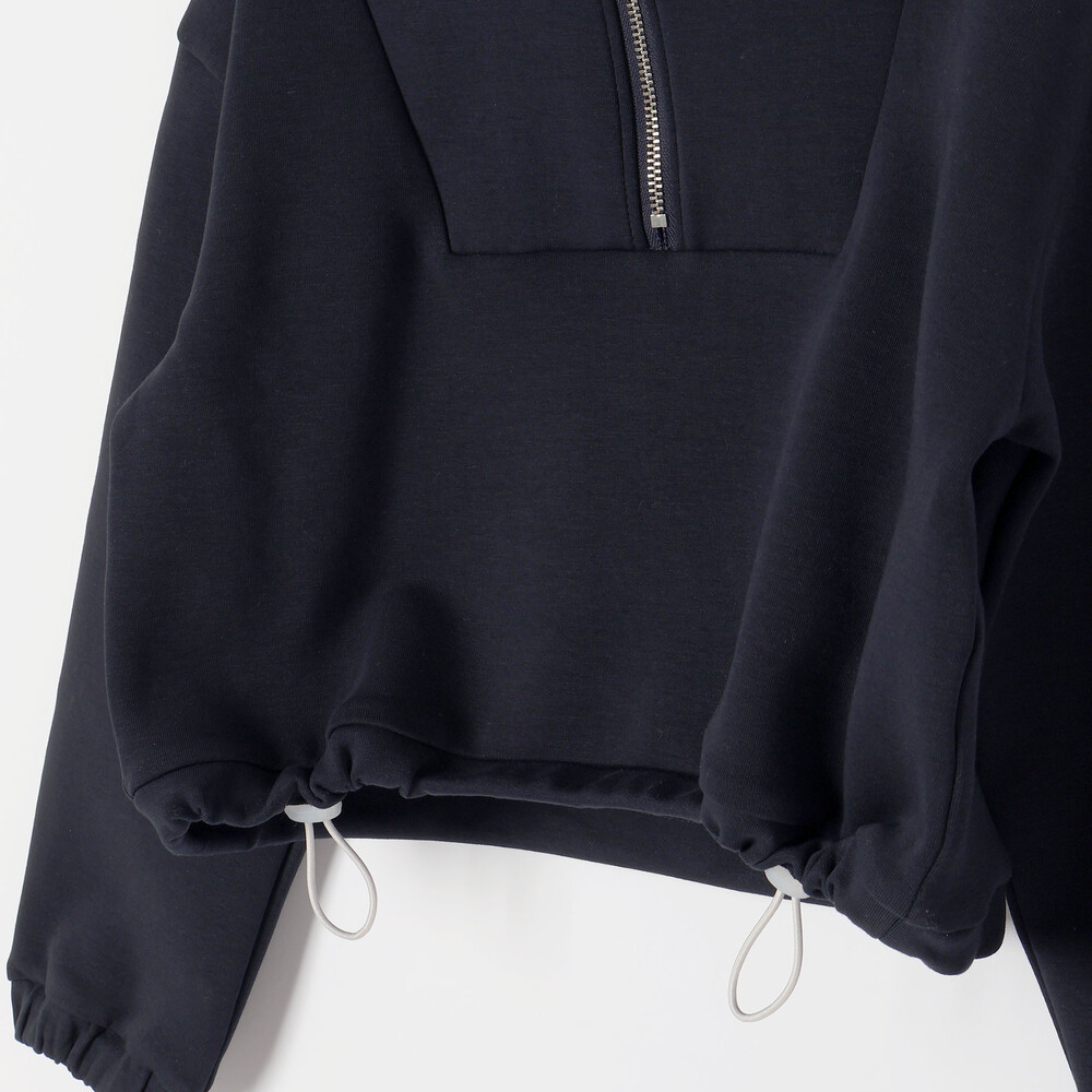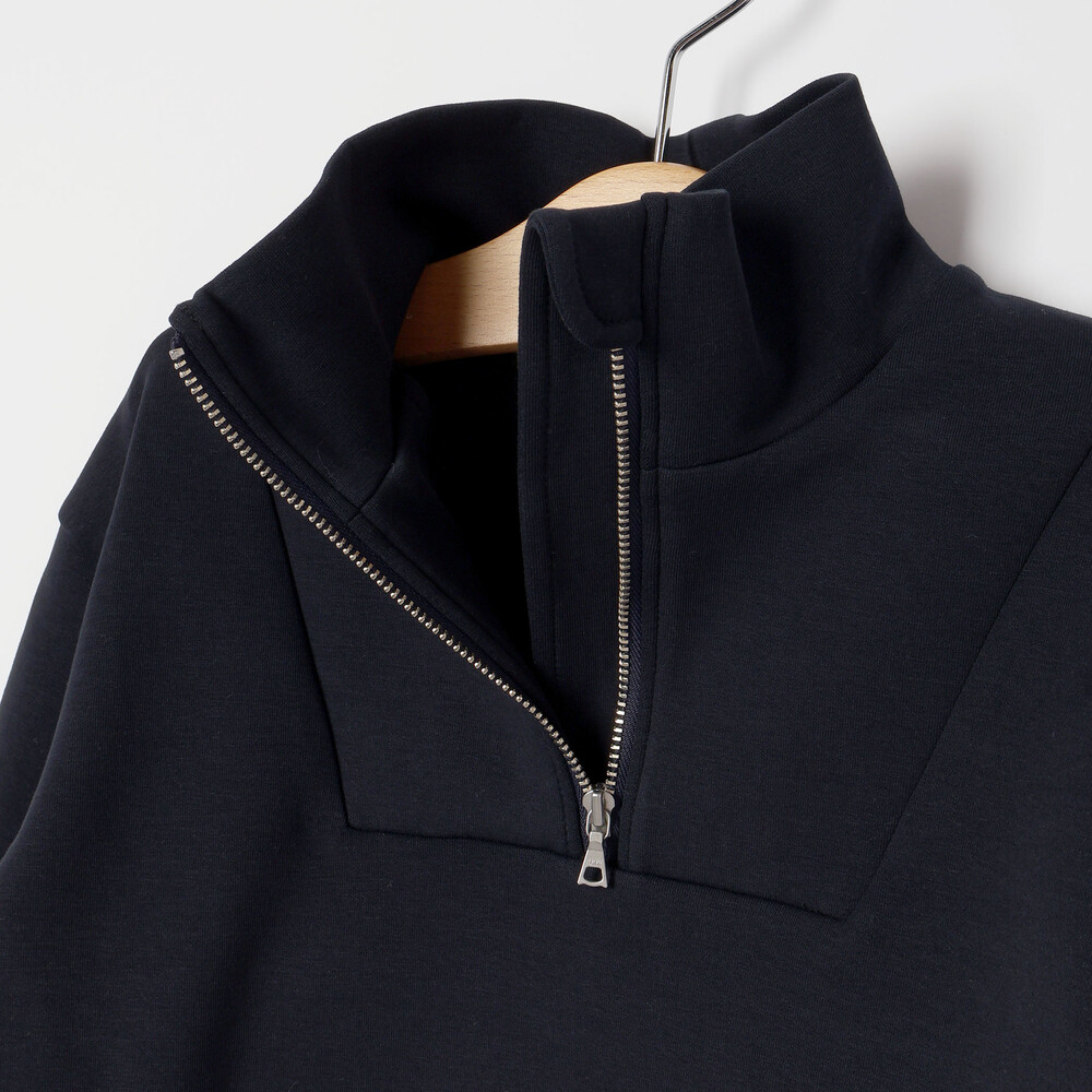 機能性とデザイン性を兼ね備えた男女兼用のハーフジップトレーナー。