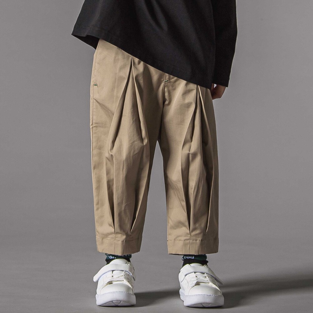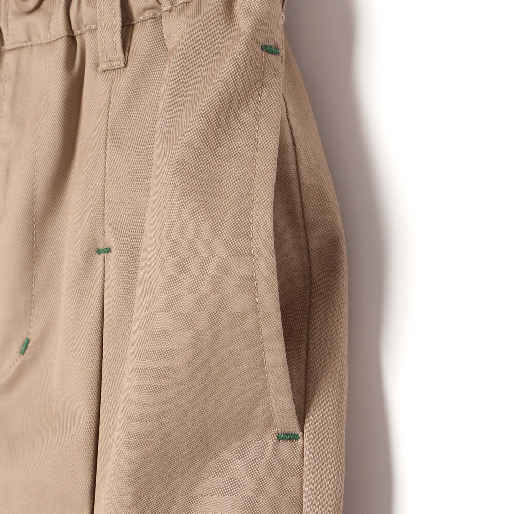 動きに合わせてシルエットが変化する変形タックがフロントに入ったテーパードシルエット。