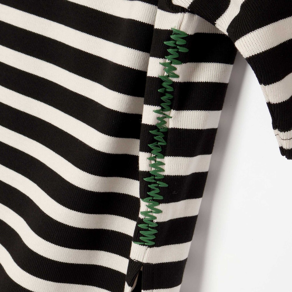 サイドにはスリット、その上にジグザグのカラーステッチを入れてこだわりが見える1着に。