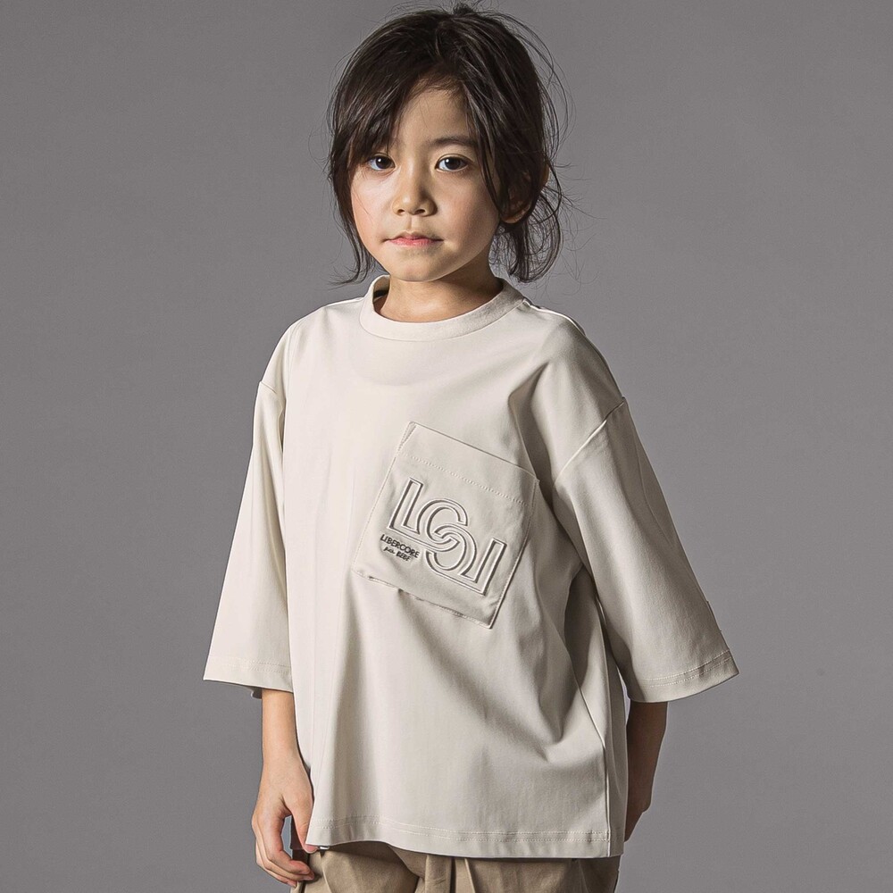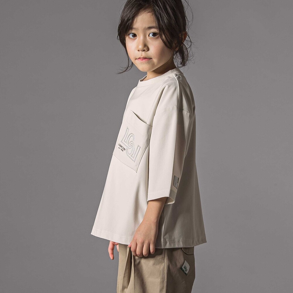 斜めに配置された大きな胸ポケットがアクセントのワイドシルエットの半袖Tシャツ。