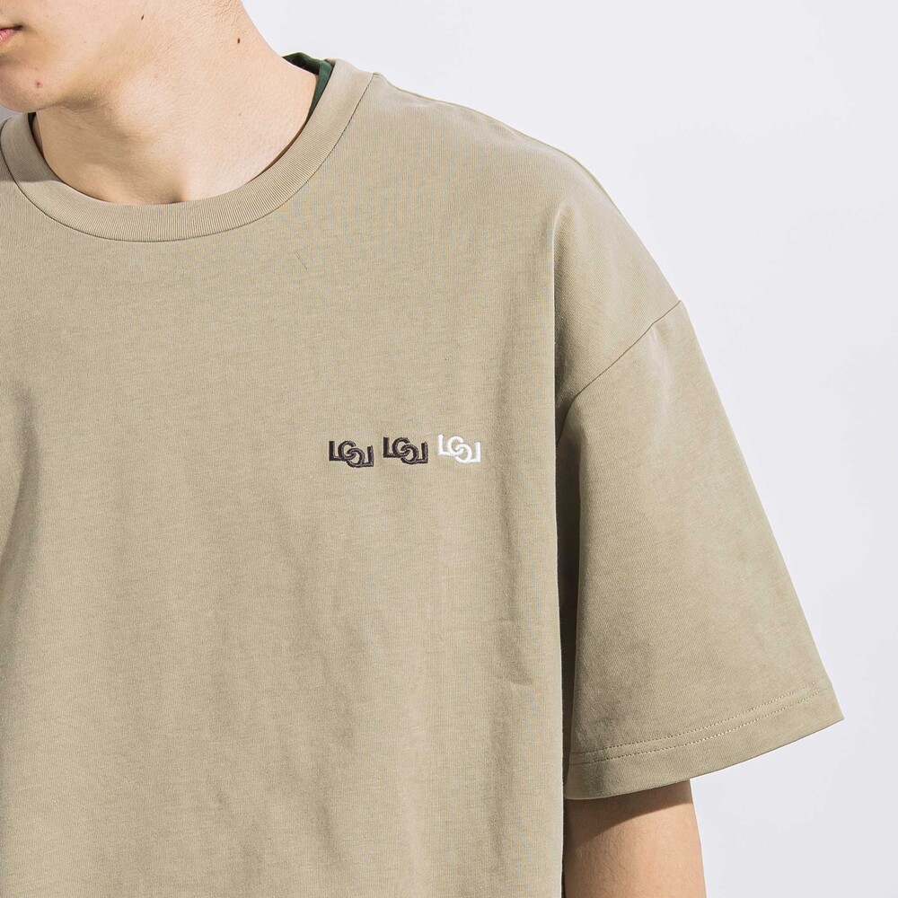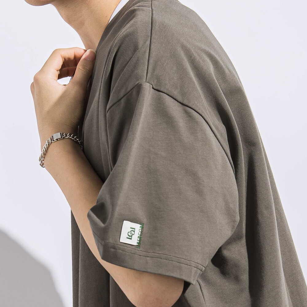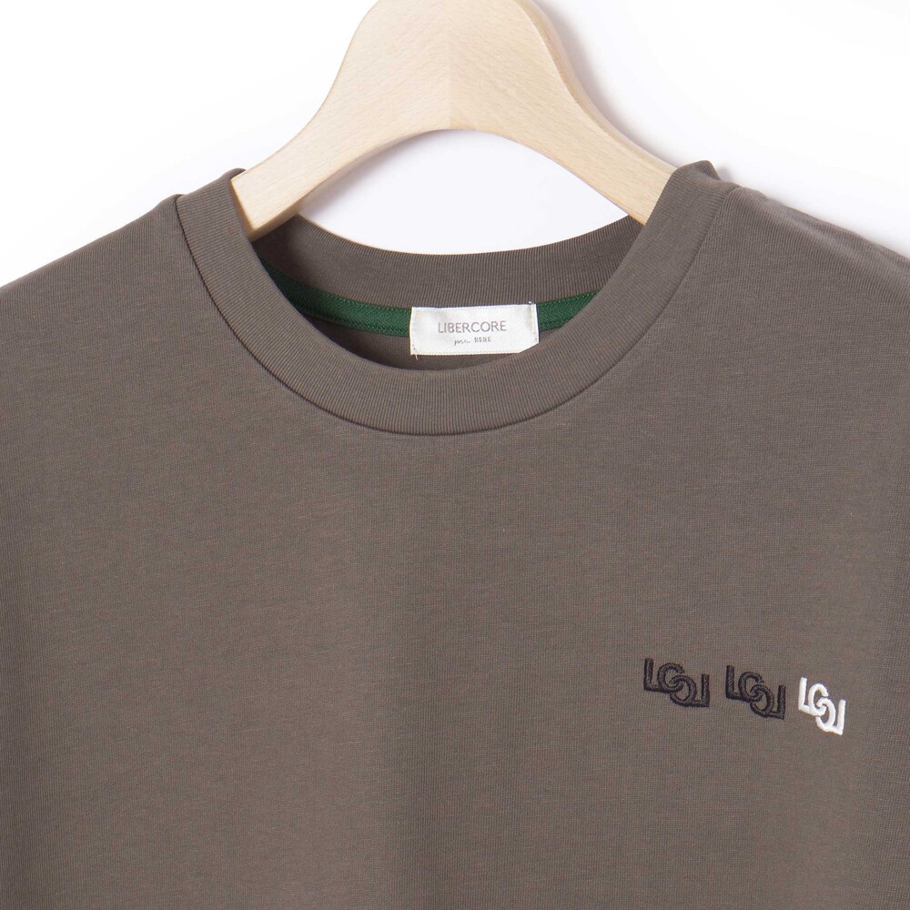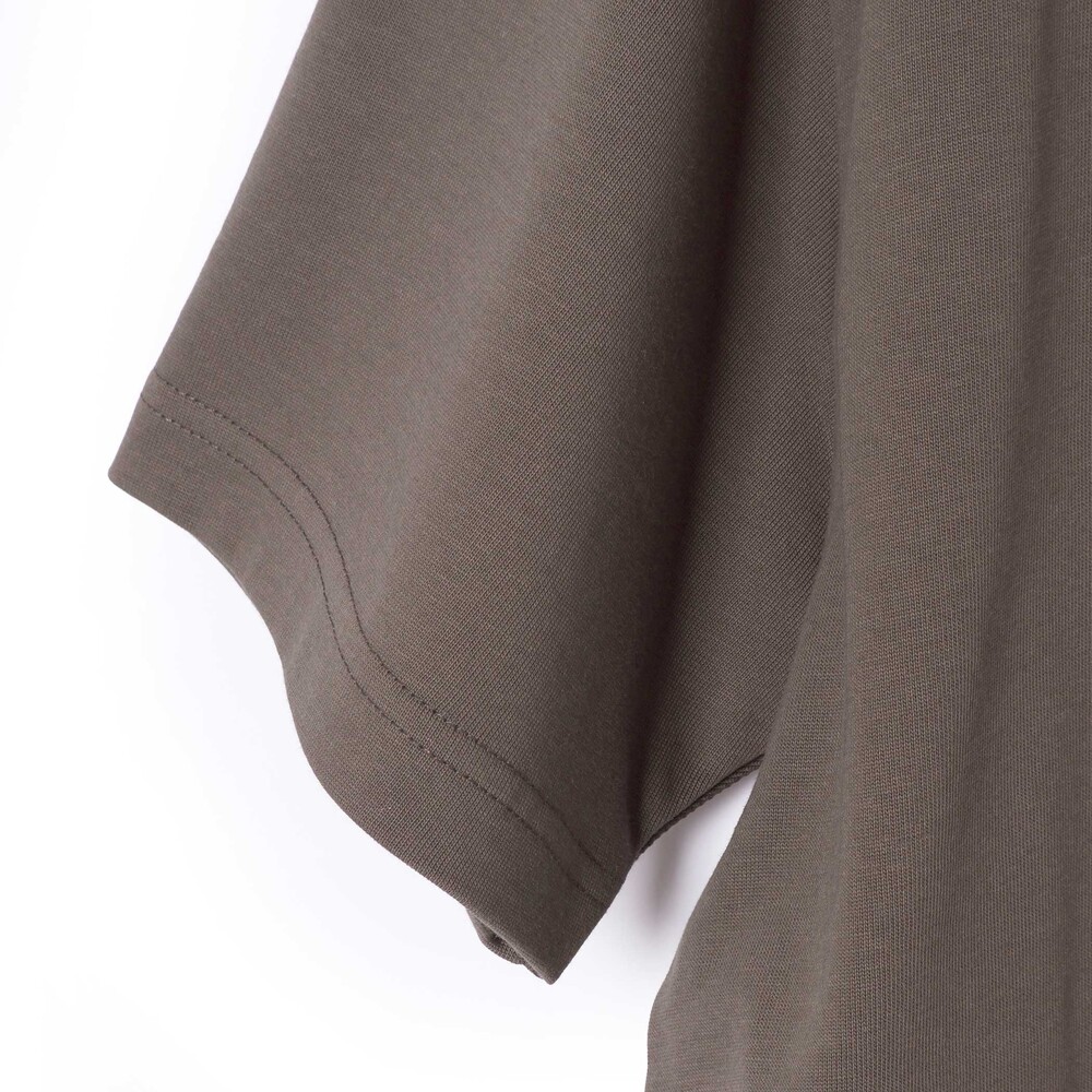 胸に刺しゅう入りのTシャツ(チャコール・淡カーキ)はしっかりとした生地感の天竺のカットソー。